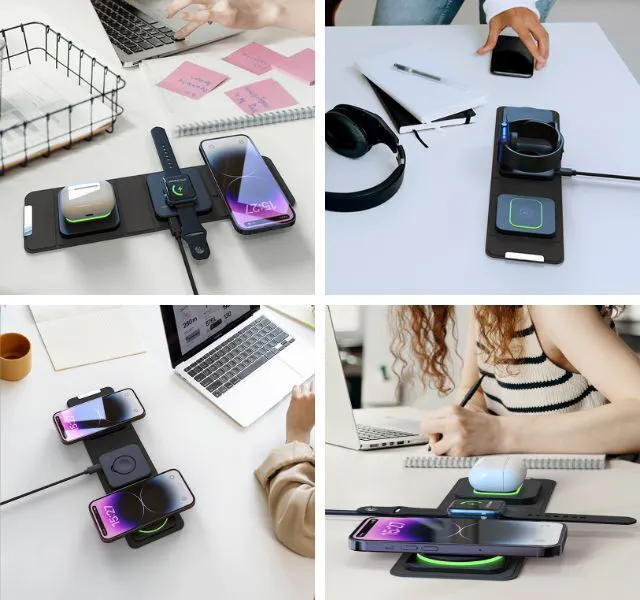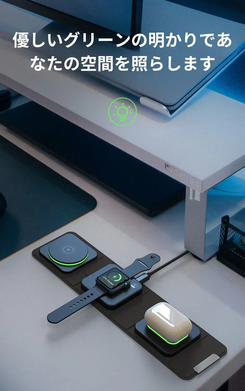 私たちの革新的なテクノロジーと精査されたデザインを組み合わせ、ユーザーのニーズに応えより良い製品を提供しています。私たちの3in1ワイヤレス充電器は、忙しい現代のライフスタイルにマッチし、デバイスの充電を効率的かつスタイリッシュに行うことができます。