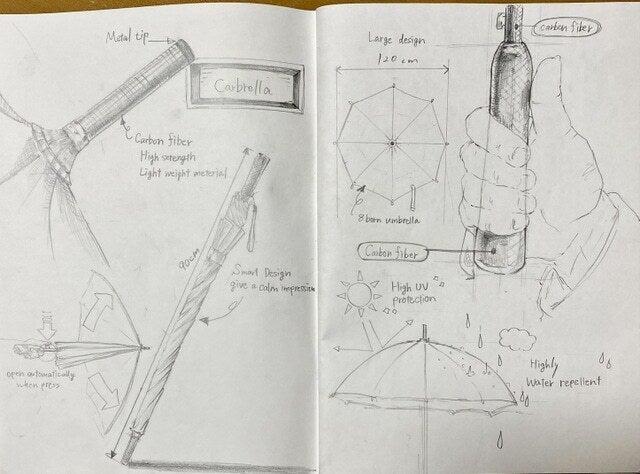 メーカーと傘のイメージや思いを伝えるためのラフスケッチです。