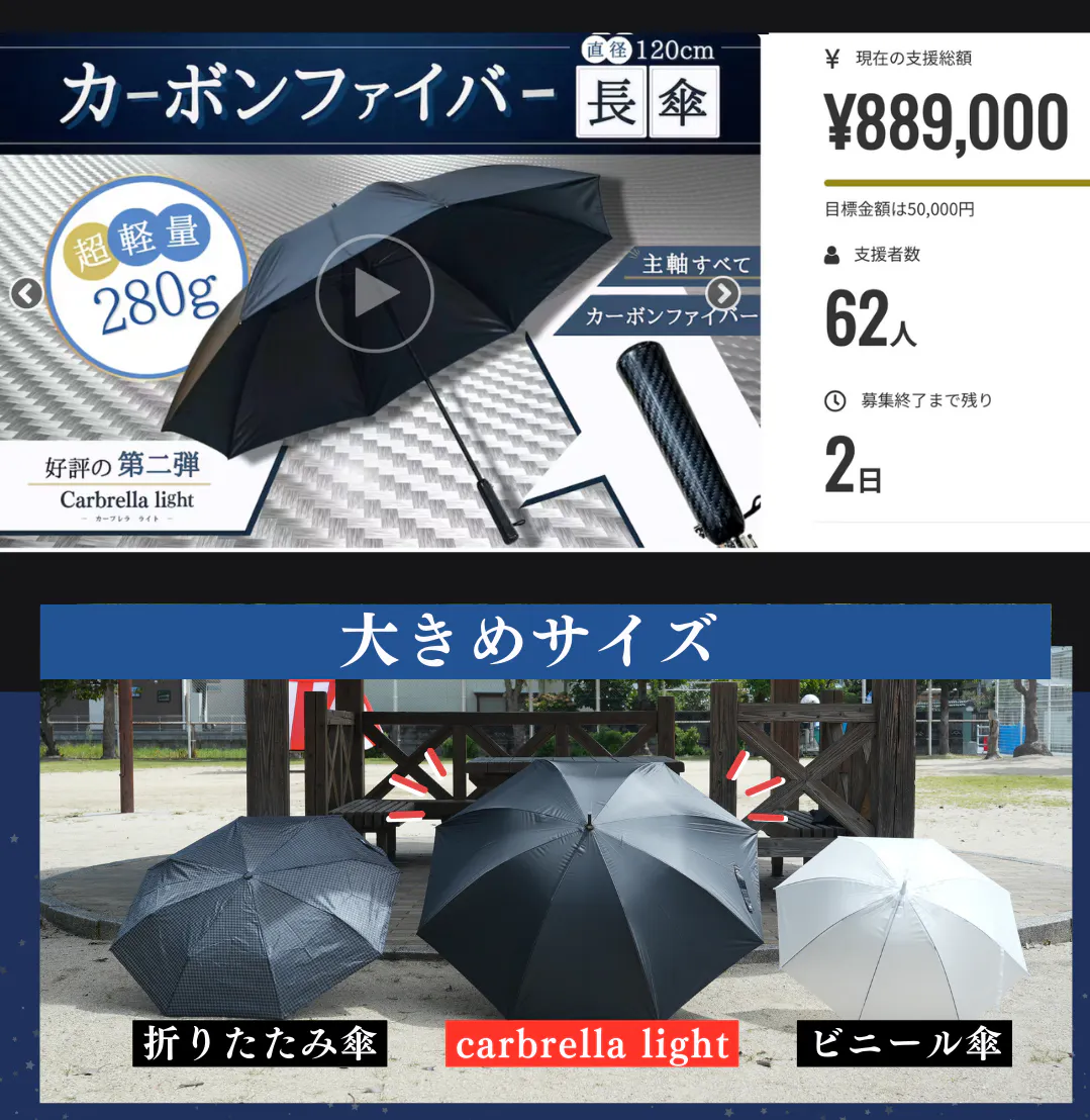 【驚きの軽さ・大きさ】大きめの直径120cmと超軽量280gのフルカーボン傘の
