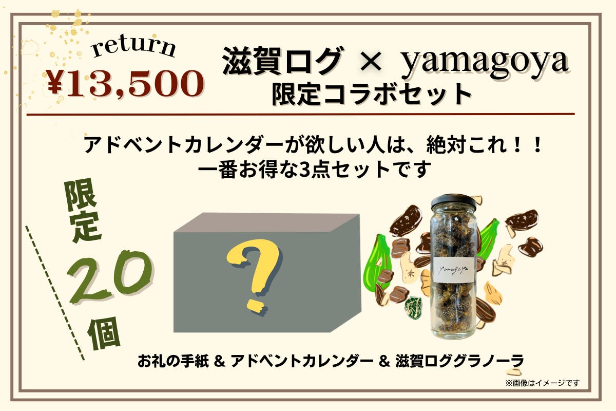 アドベントカレンダーって何それ?って始めにみつきさんに声をかけてもらった時はそんな感じでしたが、滋賀ログの二人の地元愛の強さに圧倒され、いつの間にかメンバーに!!今では「アドベントカレンダーって知ってる?」って思わず友人に紹介しちゃってます(笑)何にも知らなかった僕がおすすめするくらい、素敵なカレンダーになっていますので、知らずとも、ぜひぜひ手に取ってみてほしいです!!一緒に滋賀県を盛り上げましょ~~~(^▽^)