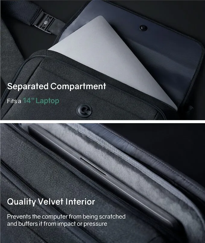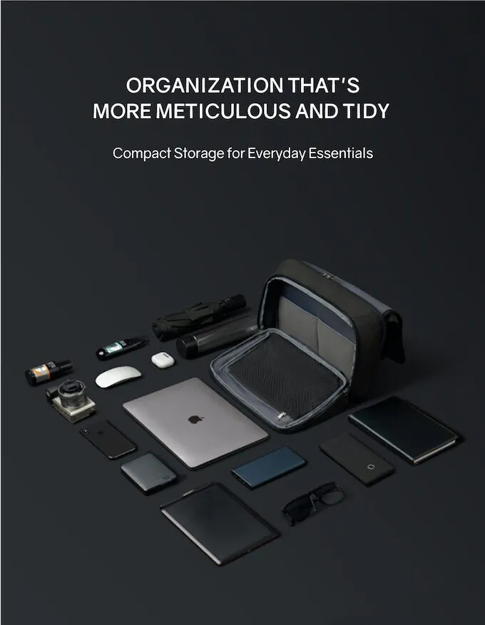 必要なものが整頓して全部入ってしまう「毎日使える」ストレージ。家でも出先でもパソコンやタブレットが手放せないなんて方のために、14インチまで対応の専用コンパートメントを用意しております。パソコン用コンパートメントの内張りは、傷がつきにくい素材を使用し、周囲はクッション素材で囲まれています。
