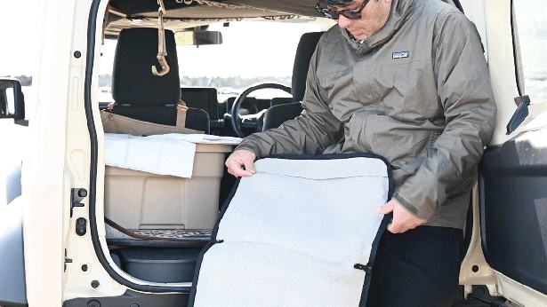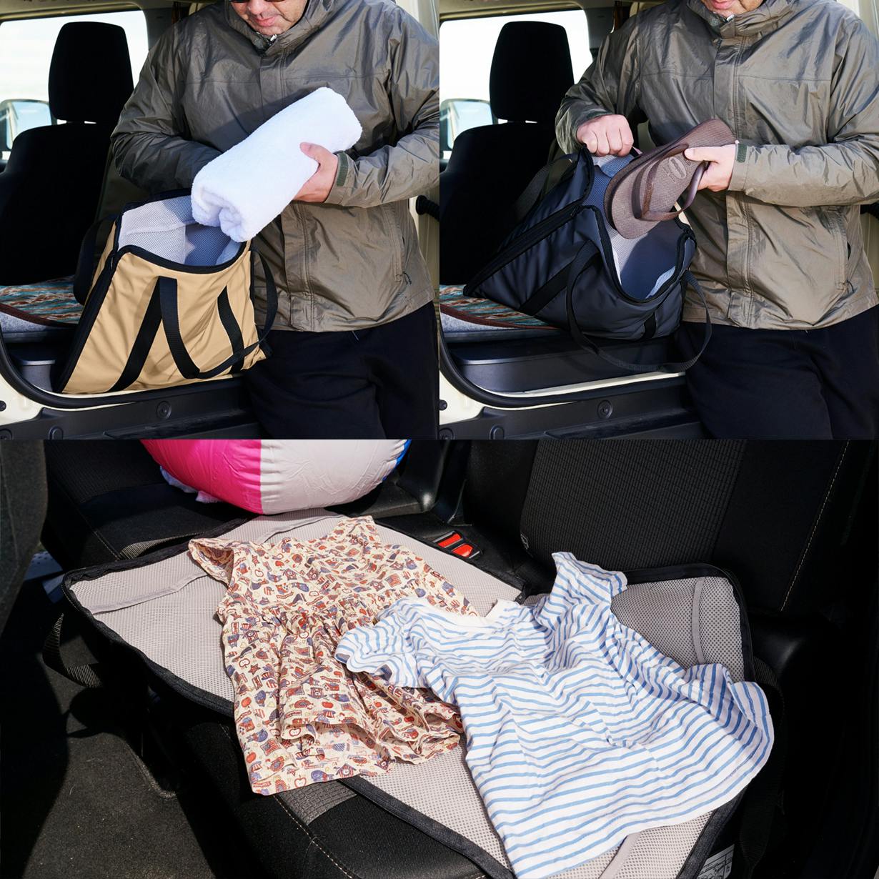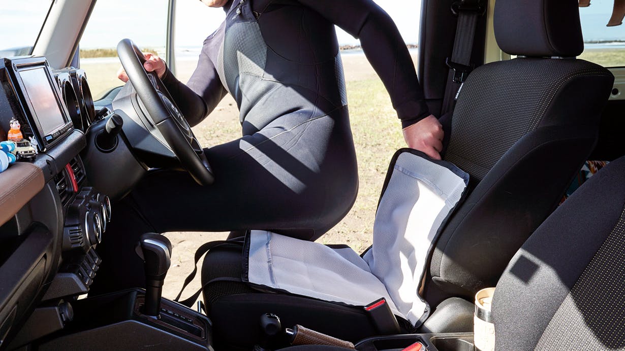 車のシートに置けば、濡れたウェットスーツやスキーウェアのまま移動がしやすい!