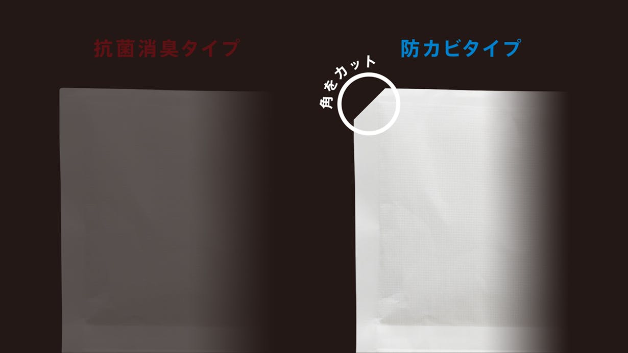※見分けやすいよう、防カビタイプのみ、角をカットしています。