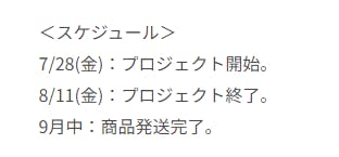 なお、リターン説明に納期が2023年11月となっていますが、発送完了が11月という意味で、ご注文いただいたら随時出荷させていただきます。