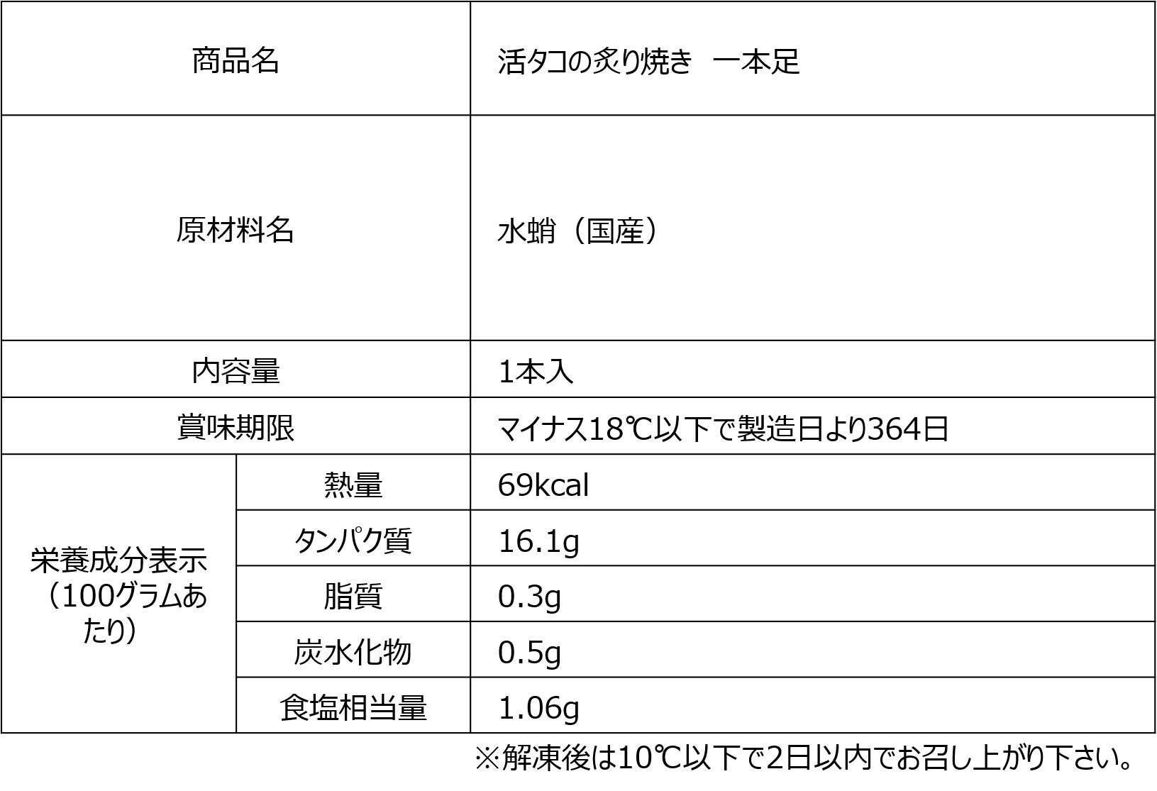 インパクトのある、活タコの足を二本セットにした贅沢な商品です。