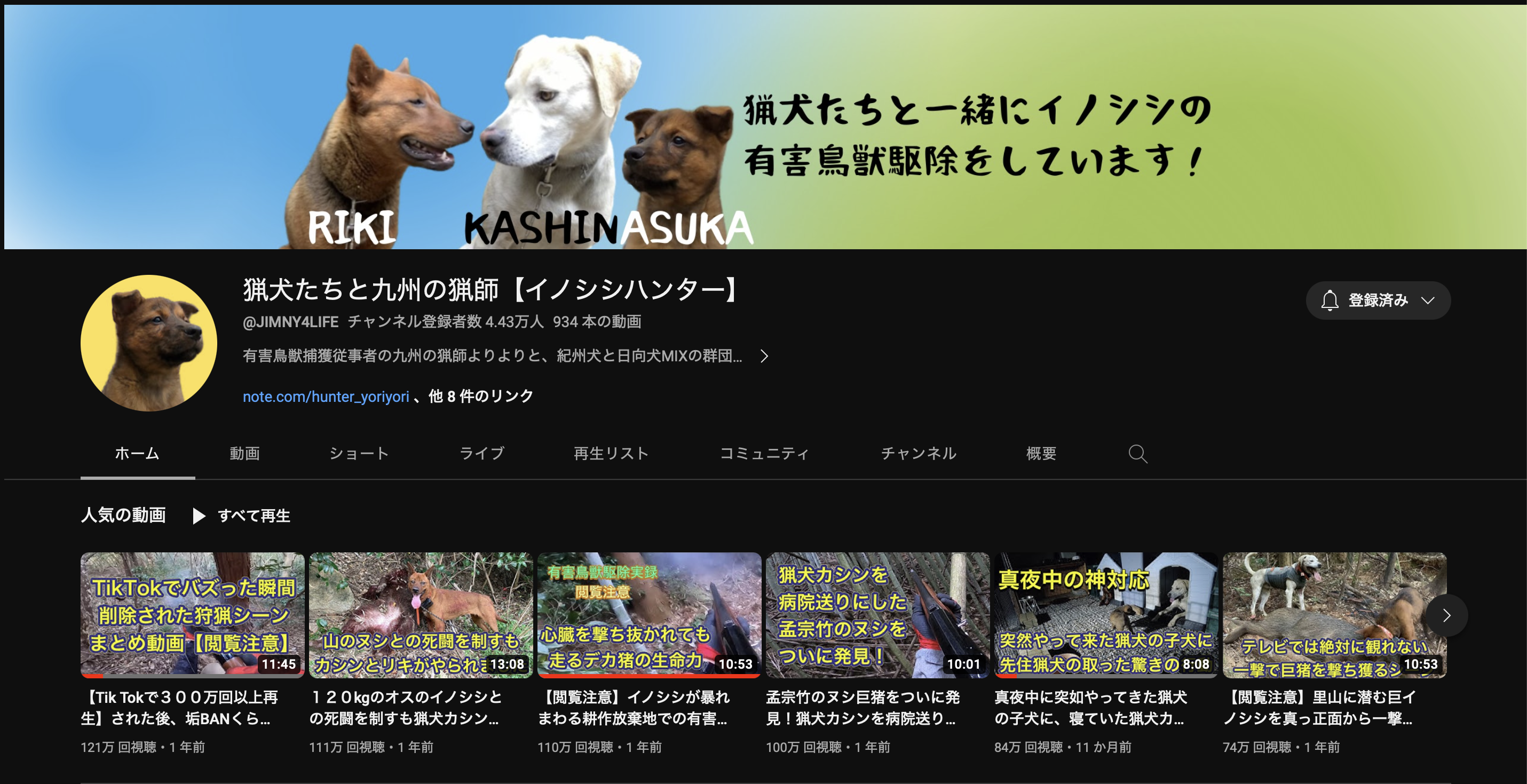 YouTubeメインチャンネル “猟犬たちと九州の猟師【イノシシハンター】”
