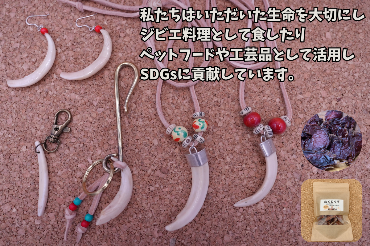 ペットフードとしてジャーキーにしたり、歯や牙はアクセサリーやキーホルダーにして