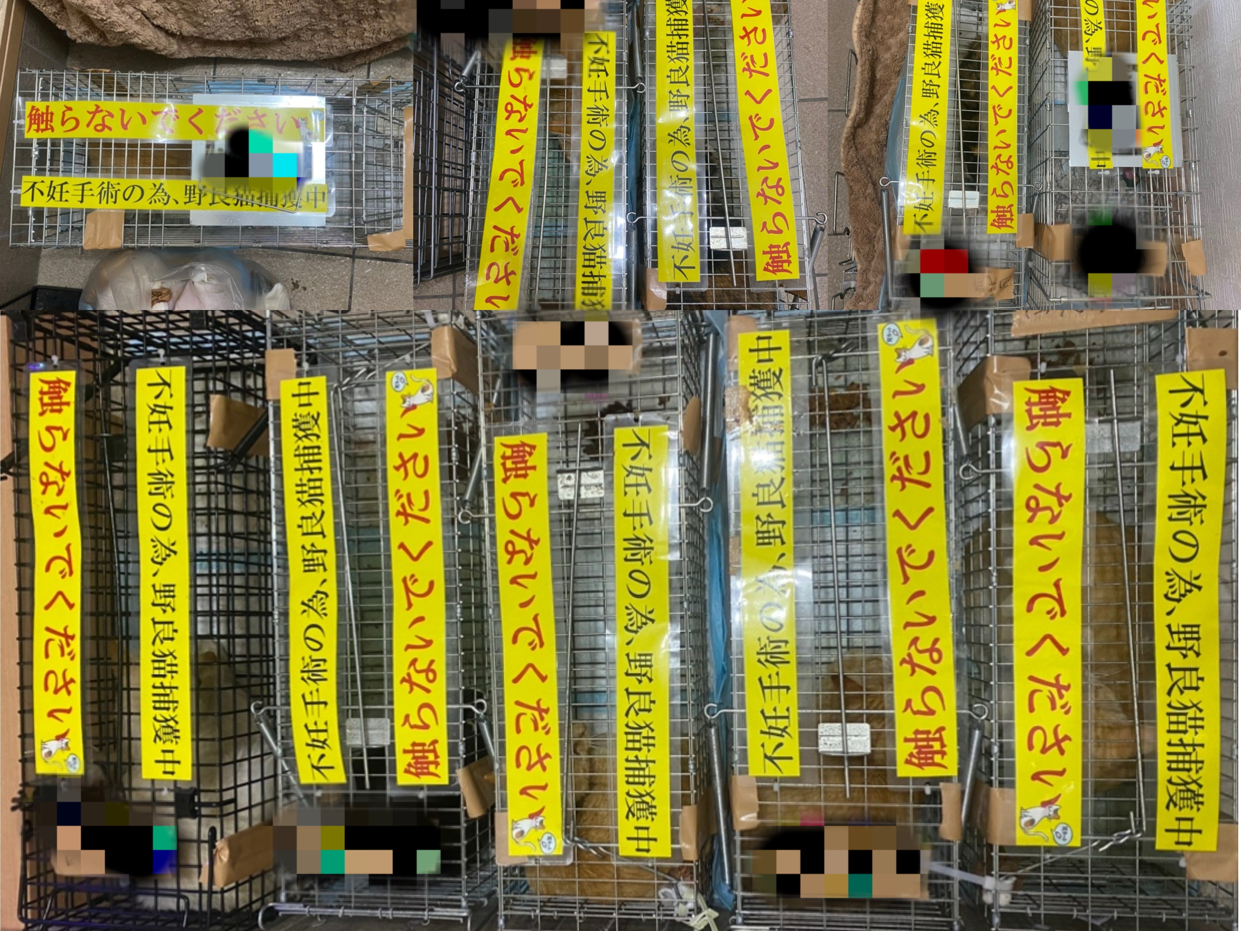 こんにちは。5/12にTNRした子たちの報告です。アメブロ:あれ?まだまだいるやん(泣)N寺とY現場で動きましたが、Y現場は捕獲できませんでした。タイトル通りですが、N寺まだまだ居そうです…。今回10頭捕獲できました。3回の捕獲で3回とも10頭ずつ捕まってます。現在N寺30頭TNR済みです。今回、ご近所さんで以前お庭に赤ちゃん産んだママちゃんも捕まったので手術に出してます。合計11頭♂:6頭♀:5頭うち妊娠2頭、堕胎7頭です。ご近所さん所のママちゃんは地域の方たちがお金を出し合ってますので、クラファンでは対応外です。N寺ですが、捕獲中私が確認したのは耳カットなし→♀5頭、性別不明1頭がまだ残ってます。今年生まれの子猫たちが屋根上で2家族、縁側下で2家族育っています。縁側下は確認ができ5頭おりました。うち1頭は明らか未熟児で小さかったため保護してます。私は本来なら兄弟は一緒に保護します。ですが縁側下で捕まえられなかったことママちゃんがまだ子育て頑張っていることから、未熟児の子だけ保護しました。無事に育ってほしいです。仕事柄私が見れないので、Yさんが見てくれることになりました。
