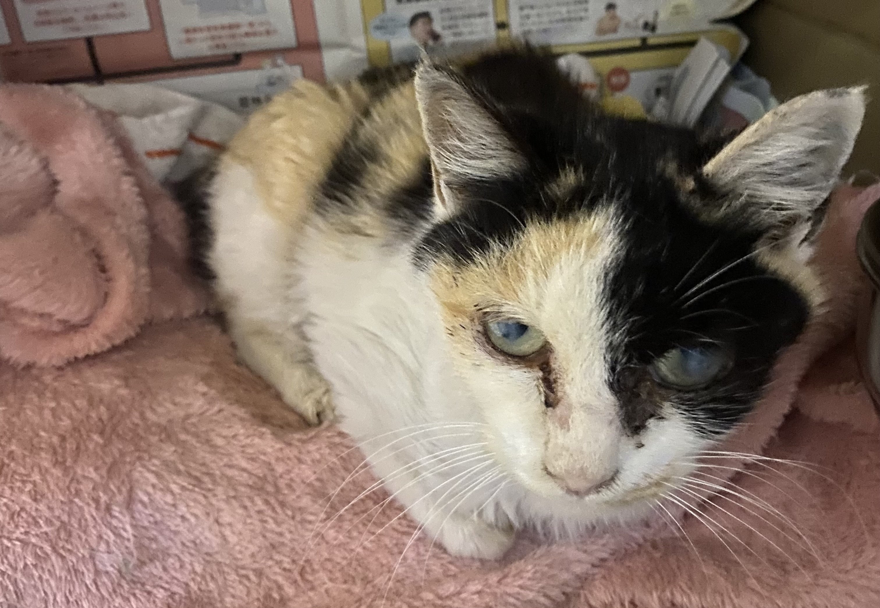 昨日の活動報告でちらりと話に触れた保護した猫、にこちゃんアメブロ:三毛ちゃんは乳がんアメブロの内容と重複してます。ご飯は食べれてます。お水は毎回こぼされて飲めているのか分からず…容器を変えて高齢猫用のミルクに変えてみました。前回の活動報告にも書きましたが、おそらく乳がんです。膿が出てたので末期かと思われます。大きい腫瘍のサイズは4センチほどあると思います。他2,3腫瘍が出来てます。今は抗生剤と鎮痛剤で様子を見ています。少し緩めの便をしますので、虫下し薬を今日か明日にでも飲ませようと思います。ノミ駆除済み、体重2.1kgのガリガリの女の子です。骨盤も浮いて出ており以前保護したときのあずま君のようです…。(保護当時のあずま君)年齢は10歳以下、乳がんになってるのでおそらく8歳くらい?とのことでした。にこちゃんと名付けてます。にこちゃんの居た現場はM山です。山の中の小さな集落の一番奥のお家。車通りも少なく交通事故の心配はなさそうなとこ。山の中なのでイノシシやタヌキが居ます。そこで餌をあげられてる方はその現場にいたにこちゃん含め9頭、飼い猫だと言いました。飼い猫ならなおさら不妊手術をするべきです。実際苦情もきて困っていたようです。お金がないから手術ができない、お金がかかるから治療できないそうして放置してきて、餌も足りず、免疫低下、他の動物にやられ、本来手術しなければ年々増えるはずの猫が、この現場では繁殖することもできず減っていったと考えます。この現場の子たちは人に慣れてました。保護してあげたいけど、飼い主さんは猫が好きなので手放す気はないのかと思われます。手術した子が見当たらないと心配されてました。リリースした日の午前中には姿が確認取れて安心されてました。飼い猫は飼われてる方の所有物になるため、勝手なことはできないです…。にこちゃんの病気に気づいていながら、飼い猫なのに見て見ぬふりをされてずっと痛い思いをにこちゃんはしてたと思います。初めてにこちゃんを見たとき、地面をじーっと座ってみてました。ずっと動かずうつむいてました。今後の治療方針はまだ固まってませんが、にこちゃんの為にできることをしてあげたいと思います。手術になった際は、今回のプロジェクトで対応できればと思います。どうか、にこちゃんの為にできる治療をしてあげたいと思いますので、ご支援よろしくお願いいたします。3月だけで約49万使ってます…。私では対応できないとこまで来てます…。まだTNRの猫たちも残ってます。よろしくお願いいたします。