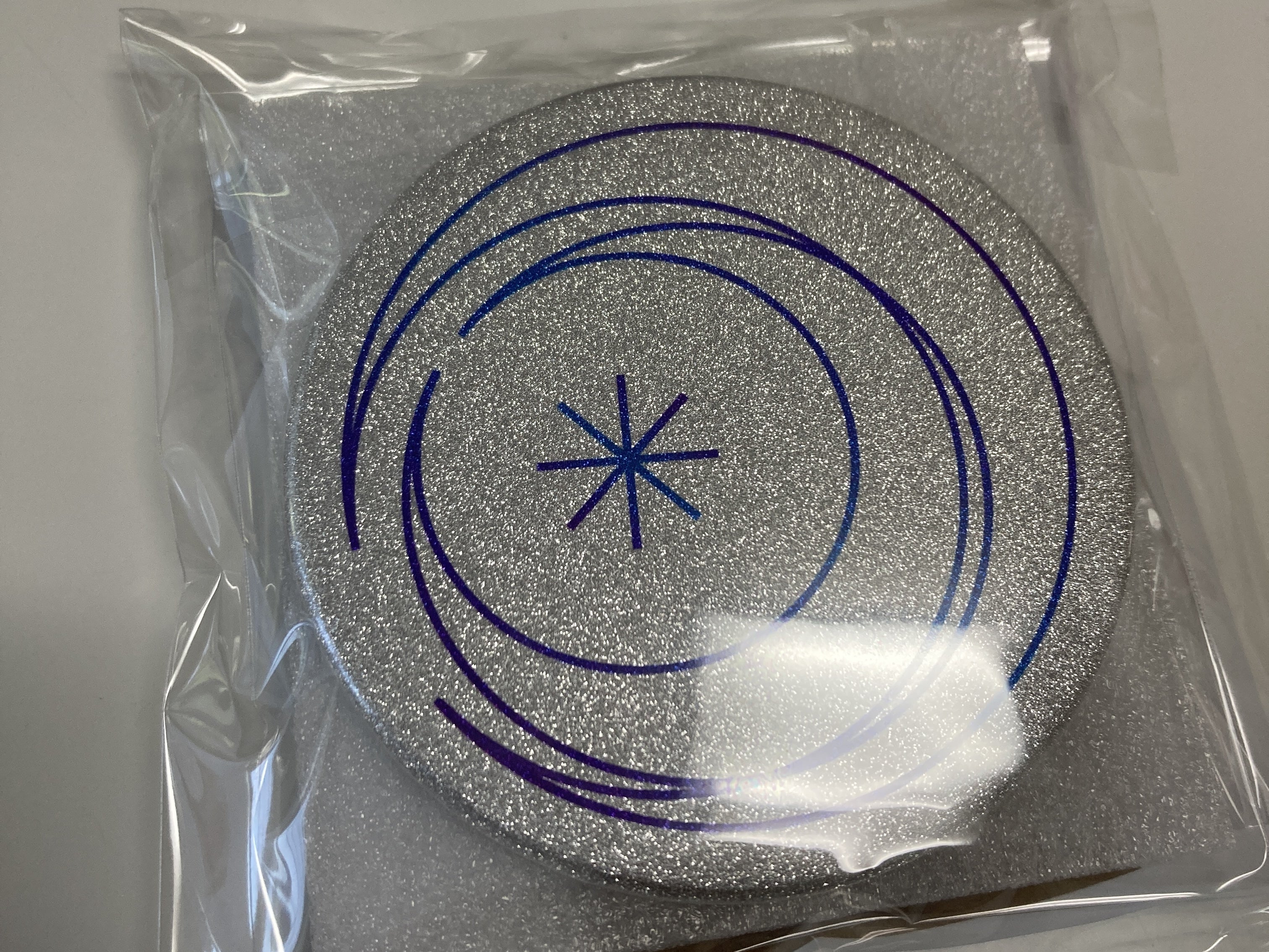 私の姿はしっかりとプリントしていただきましたが紫の雪の結晶やネームロゴは透明感のある印刷(白押えなし)になっています
