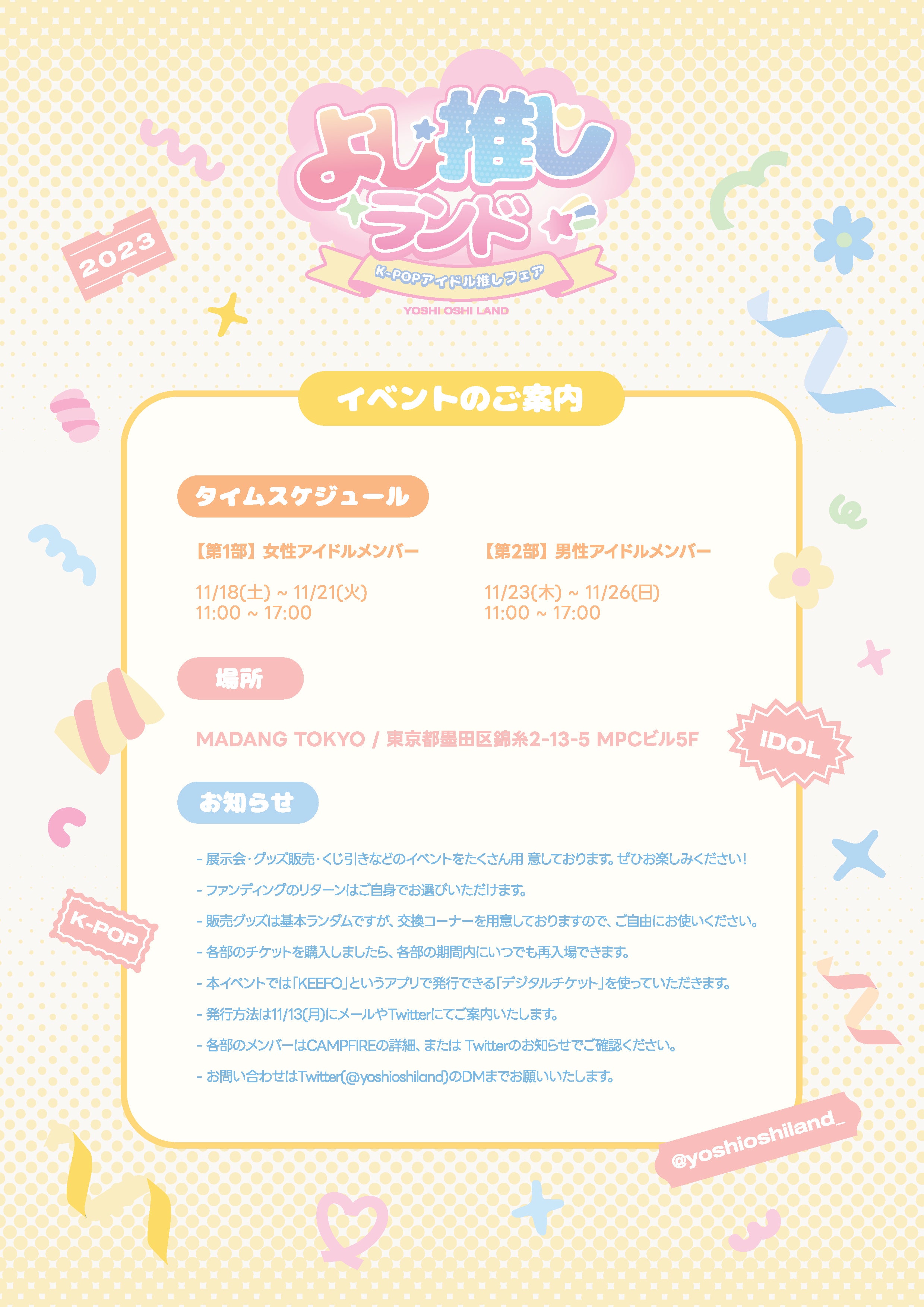 11月18日(土)~26日(日)まで【よし推しランド:K-POPアイドル推しフェア】を東京で開催いたします。