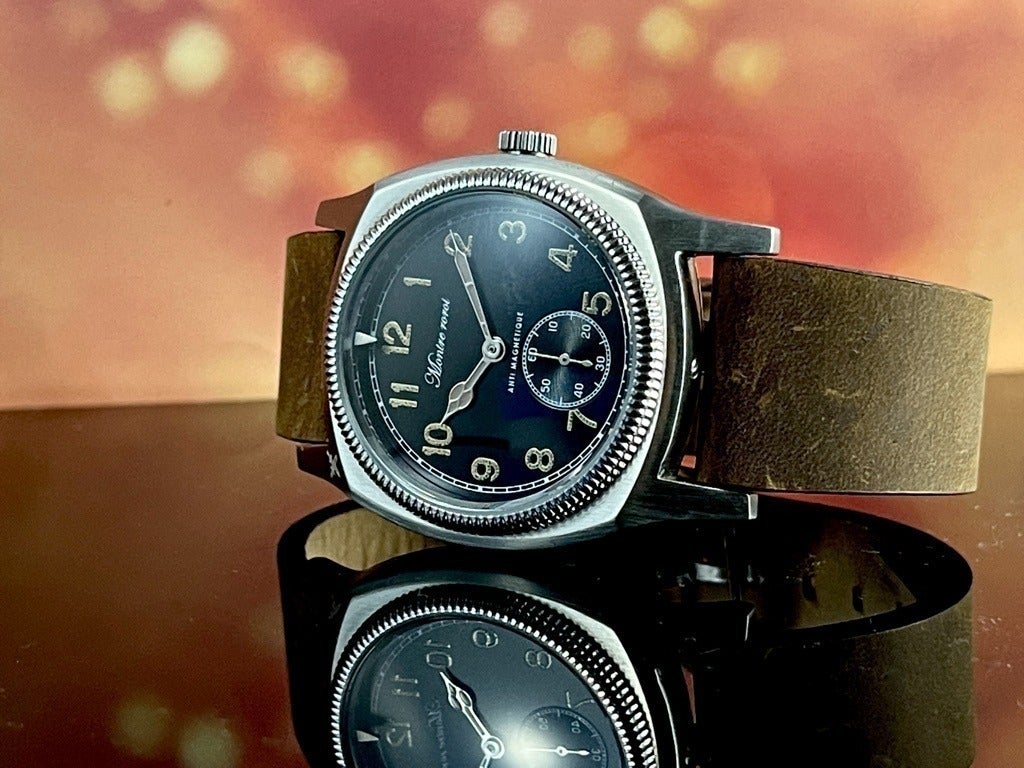 マジェテックとは、1935年から1945年の間ロンジン、エテルナ、レマニアにてチェコスロバキア(1918年から1992年にかけて存在した現在のチェコおよびスロバキア共和国で構成されていた連邦国家)軍の依頼を受けて製造したクッションケース型パイロットウォッチです。