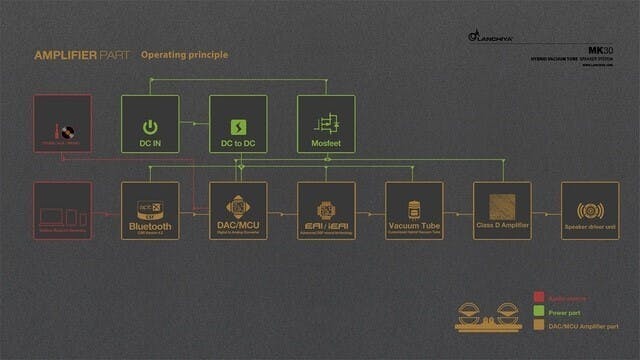 真空管オーディオシステムはLanchiya社によって設計されました。2006 年に米国カリフォルニア州20人を超えるオーディオ専門家によってLanchiya Acoustics Researchが設立されて以来、Lanchiya社は強力な研究開発チームを作り、一流の電子および電気音響研究所を設立し、オーディオ分野で数え切れないほどの革新をもたらしてきました。