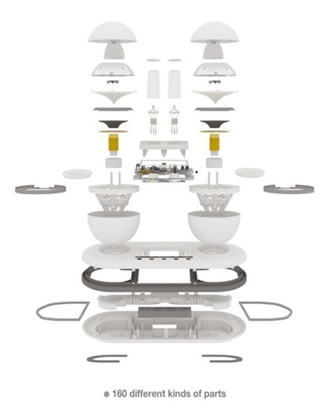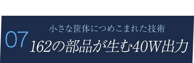 この小さな筐体に162個の部品を詰め込み、しかも、歪み、共振、空気漏れなどなく、最大40Wの音を出すことができる。