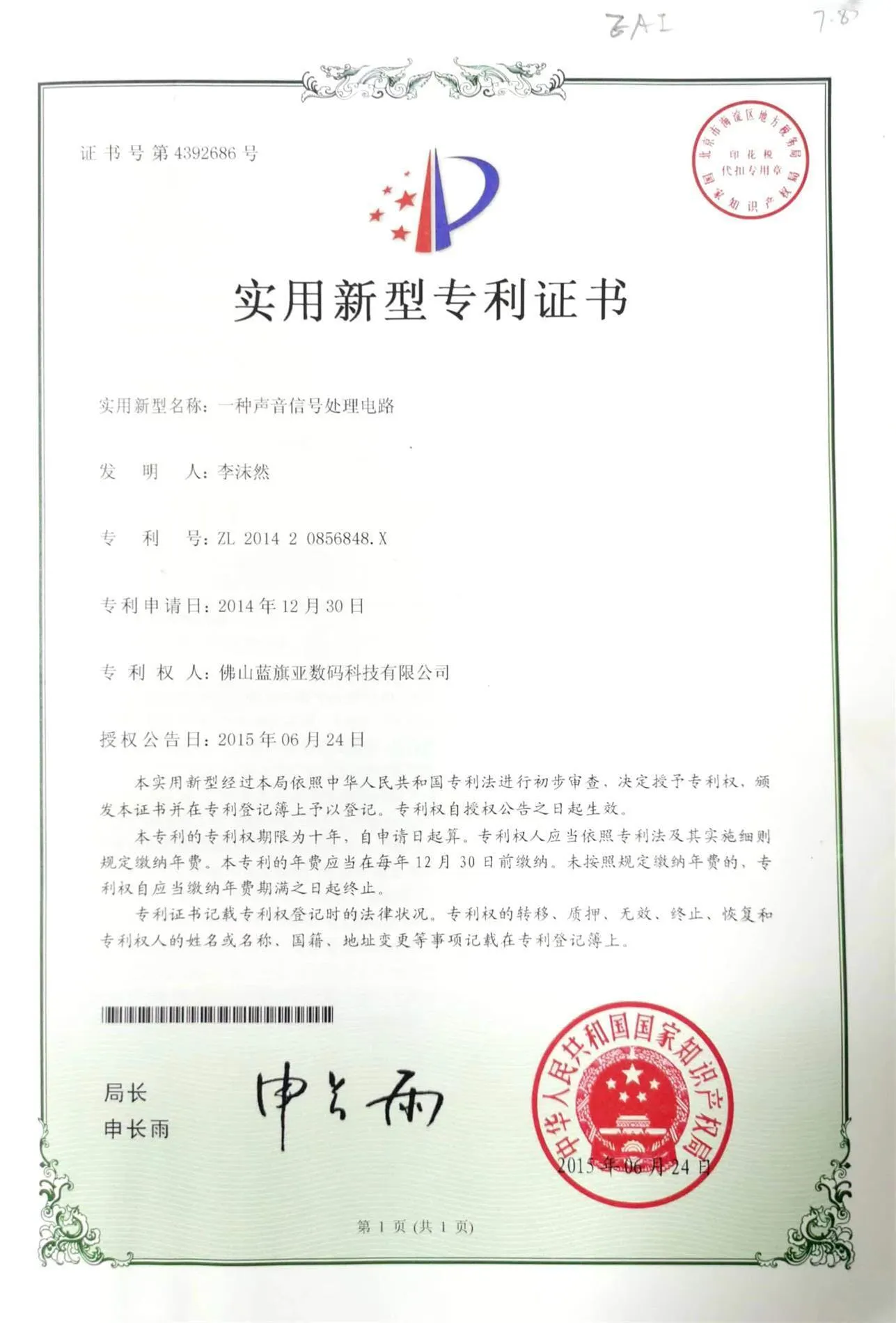 ■以下、特許証明書