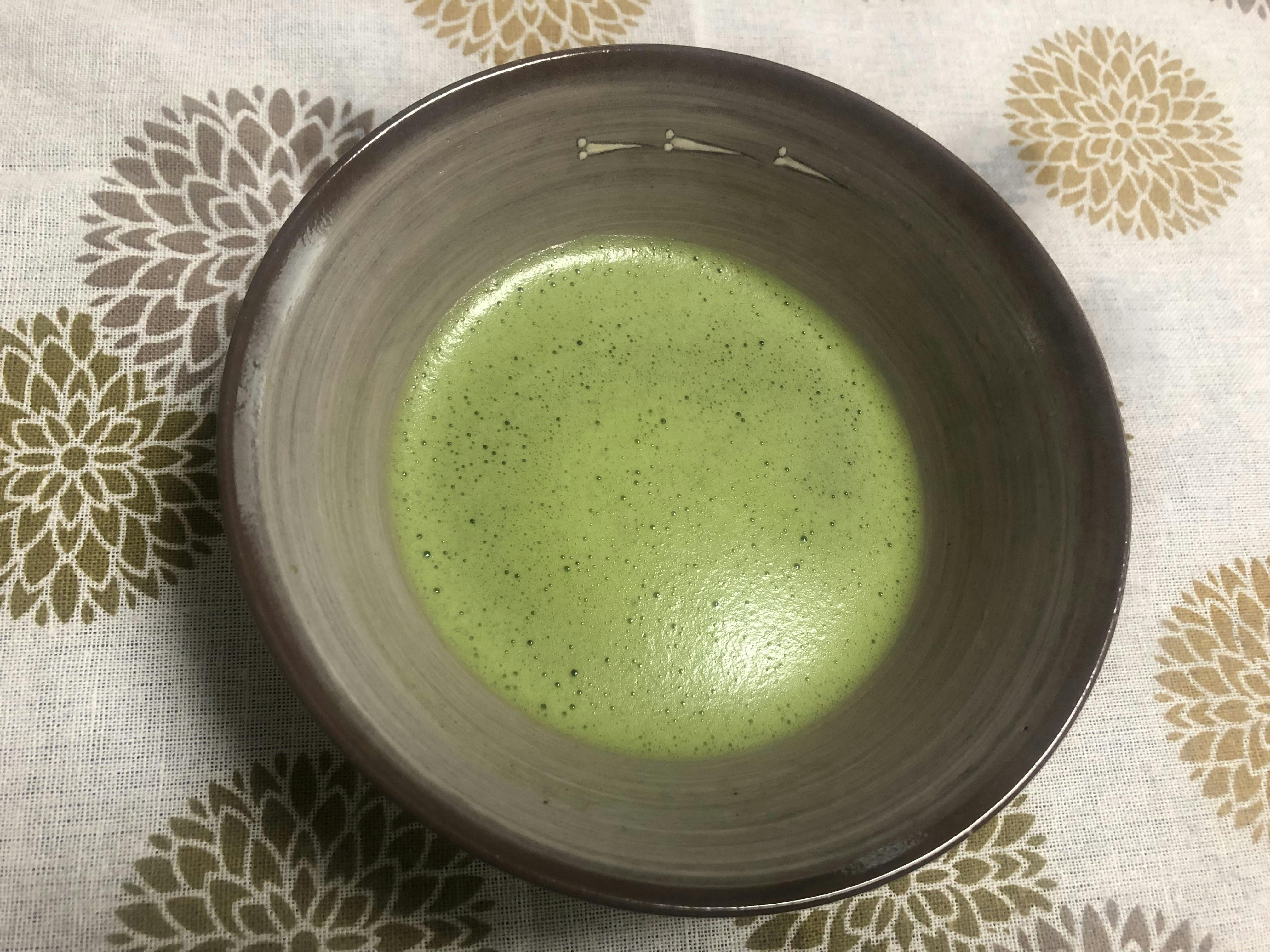 お客様にはお菓子とお抹茶を召し上がっていただき、また実際に茶筅でお茶を点ててもらう等の