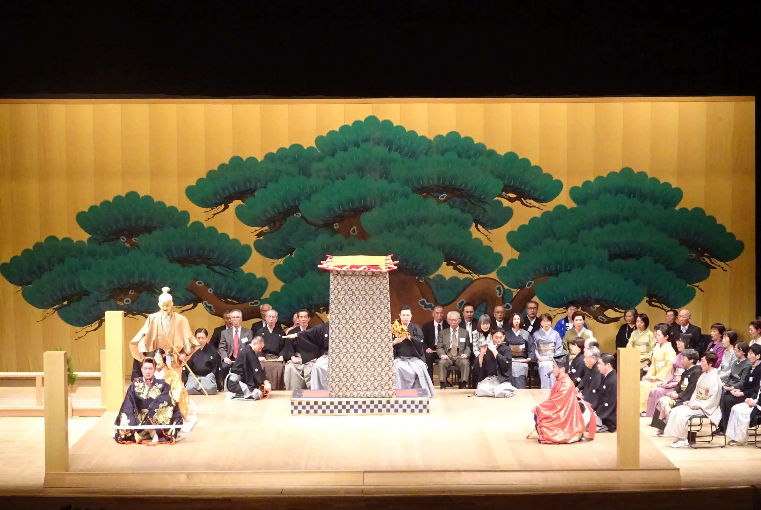 近江は、かつて能の前身である近江猿楽が盛んであり、近江猿楽六座が活躍した能楽発祥の地のひとつです。能「竹生島」を能楽師が演じ、能楽師とともに詞章である「謡(うたい)」を舞台上にて参加者全員で高らかに謡い上げ、近江の地で能楽を伝承して行きます。