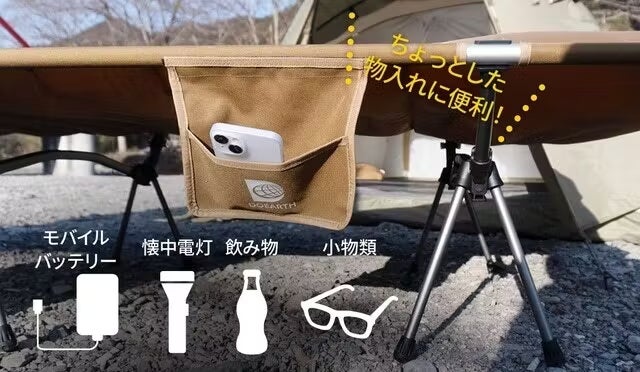 キャンプ内で寝るときにスマホやイヤホンケース、飲み物など小物の置き場に困ることありますよね。