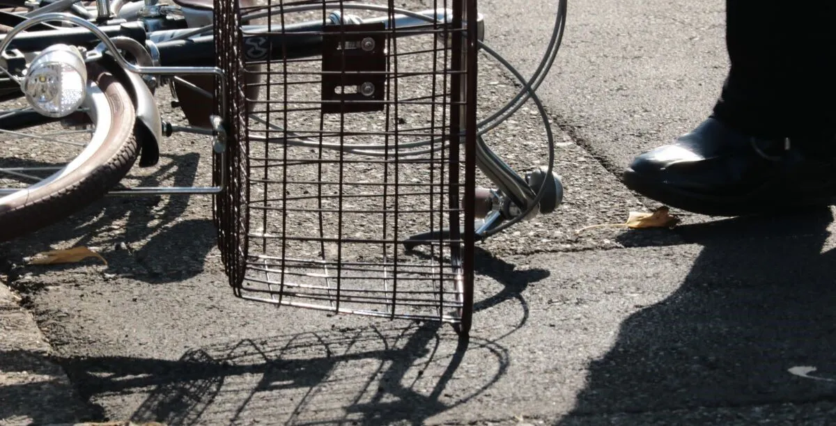 その時にちょうど駐車場の前を走っていた自転車にぶつかってしまったのです。