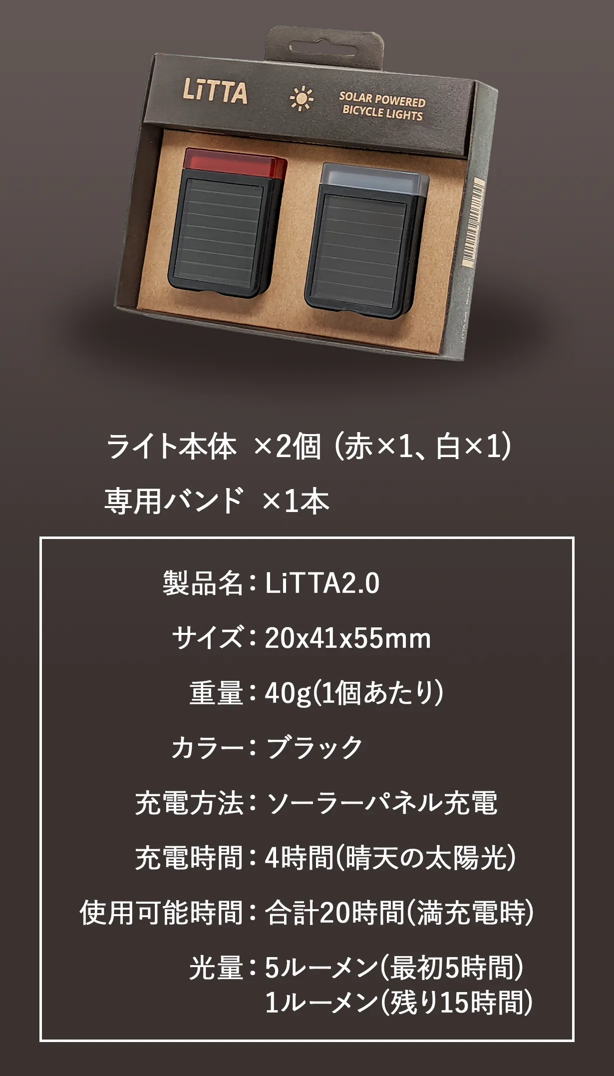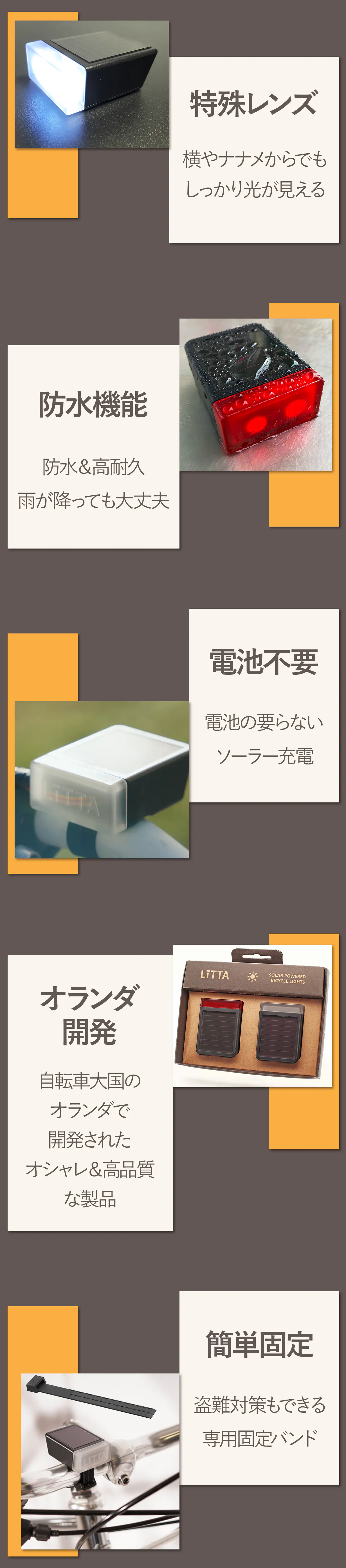 私は使い捨ての自転車用ライトは材料、お金、時間の無駄だと考えています。そのため、私はLiTTAを設立しました。耐久性があり、盗難防止にもなる自転車用ライトで、ソーラー充電することができます。