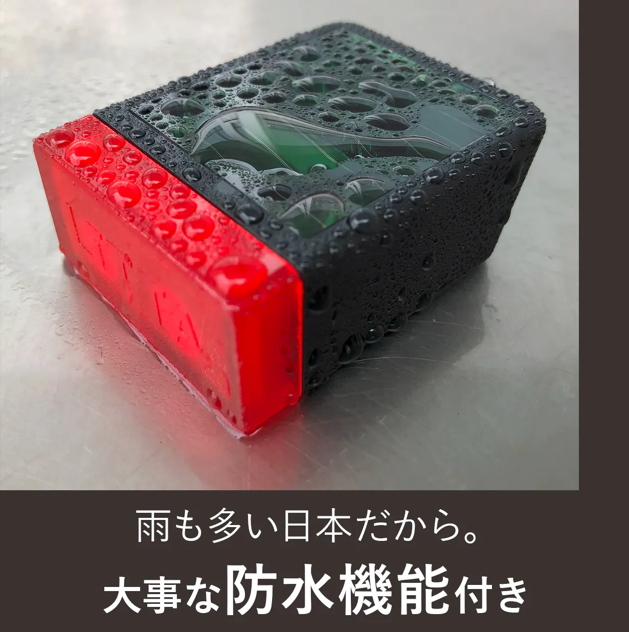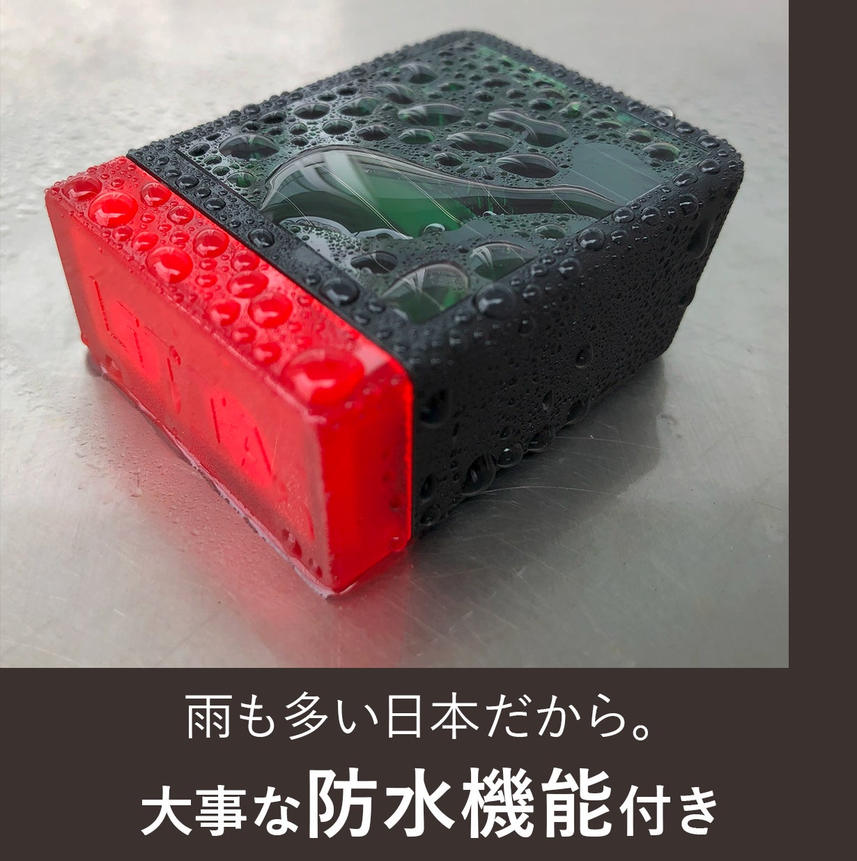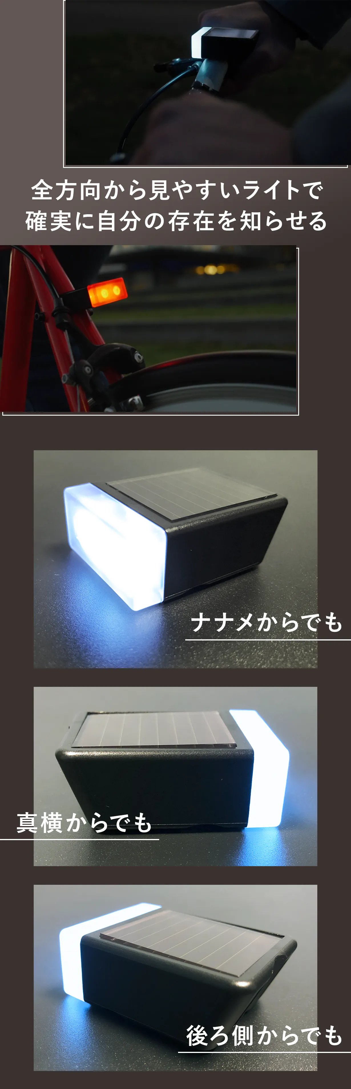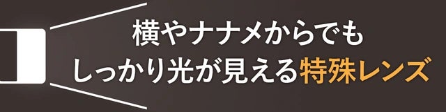 反射板では存在をアピールできない横やナナメを含む【全方位から】視認性が高いボックス型の特殊レンズをつけました。