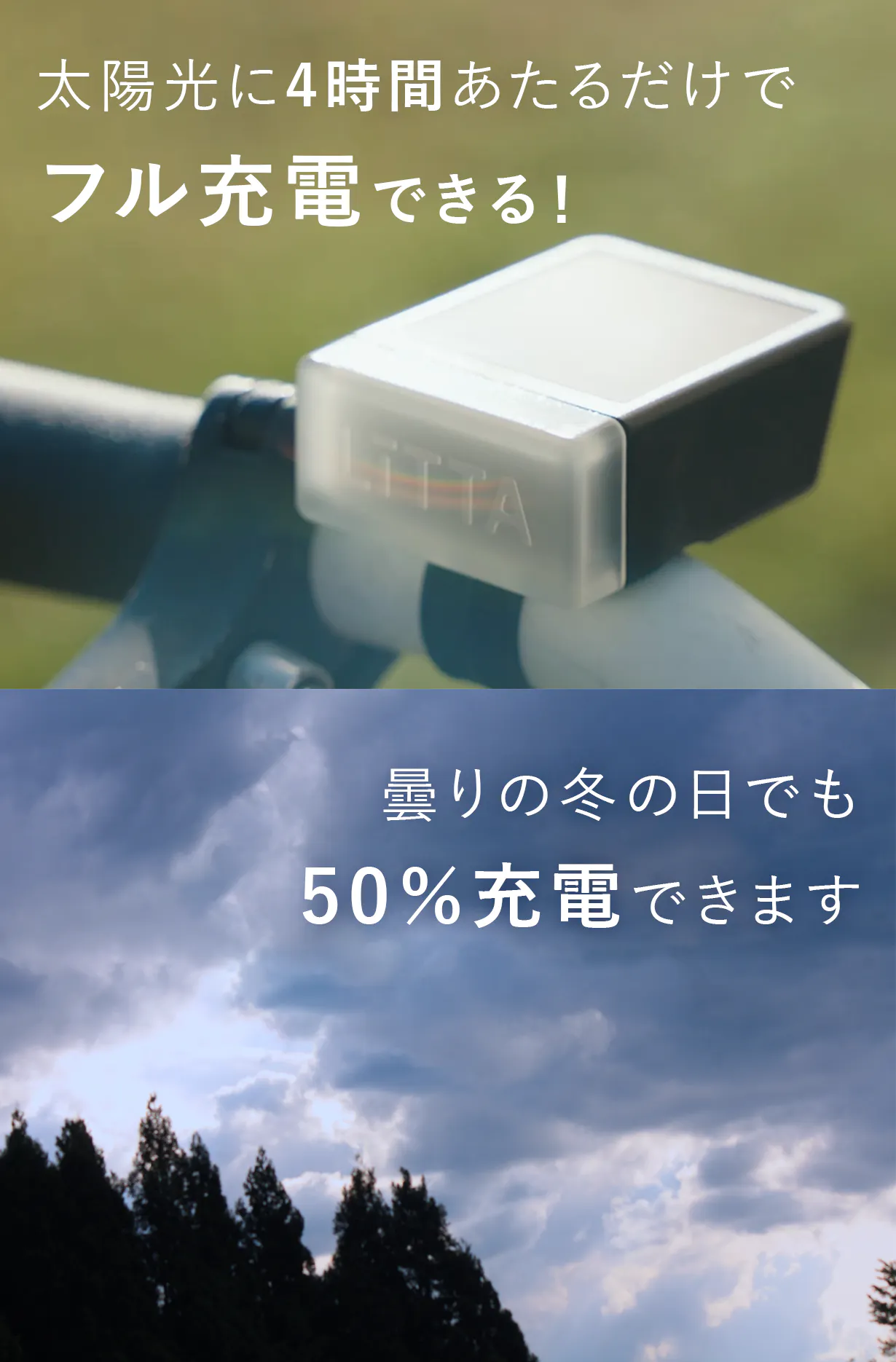 だからLiTTAは【ソーラー充電】を採用しました。