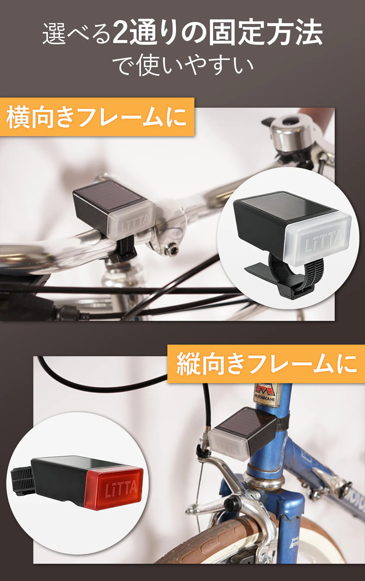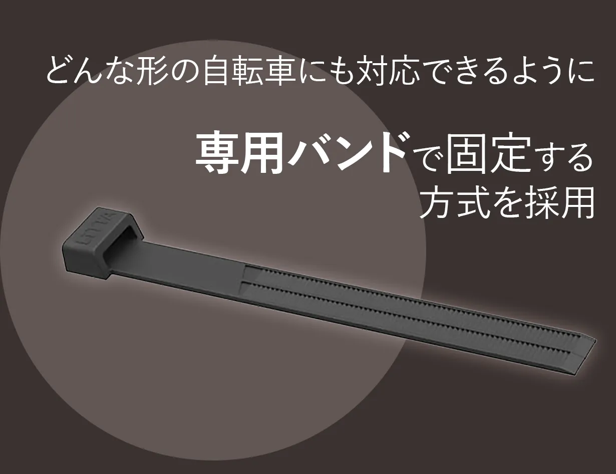 どんな自転車に乗っていても事故から守れるように、しっかり固定できる専用バンドを採用しました。