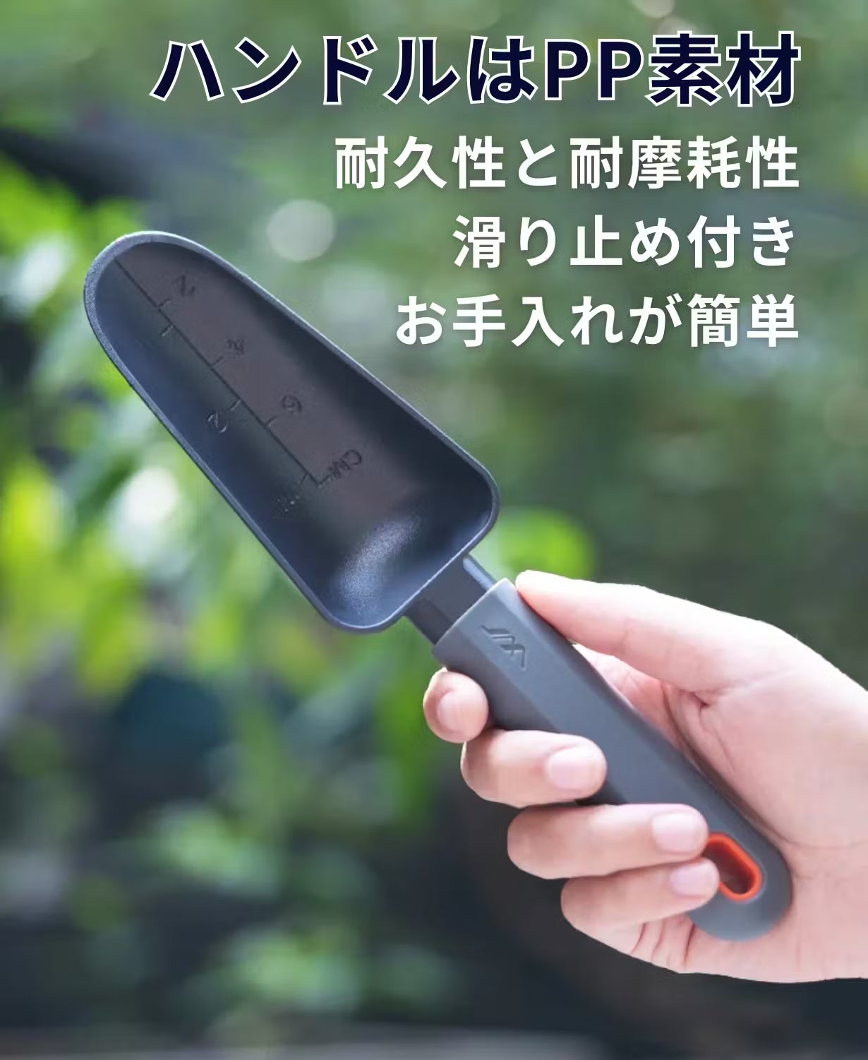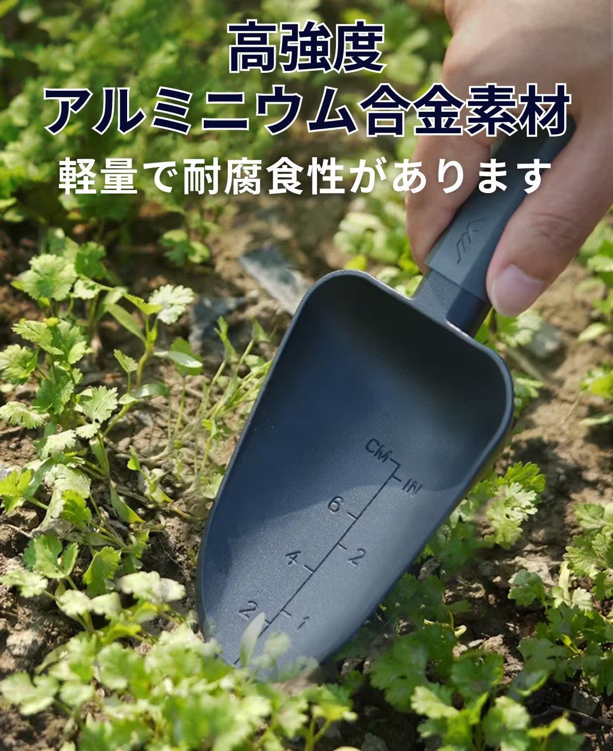 軽量でサクサク掘れる!丈夫で錆びにくい、目盛り付きガーデニング用スコップ