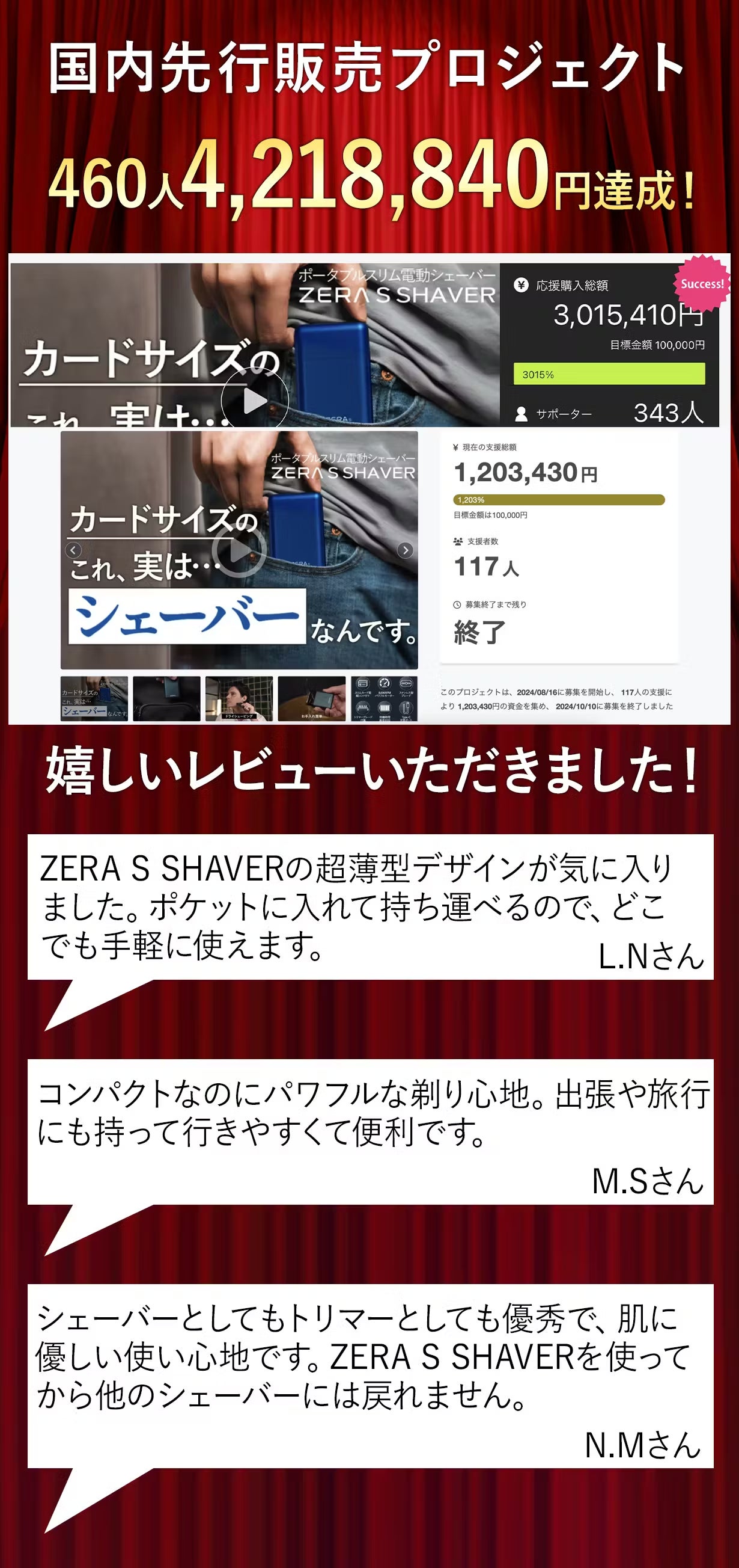 今回は皆さまに「薄型デザインでヒゲ剃りとトリマーを1台でこなし、Type-C充電で90日間待機可能ZERA S SHAVER」プロジェクトを紹介させて頂きます。
