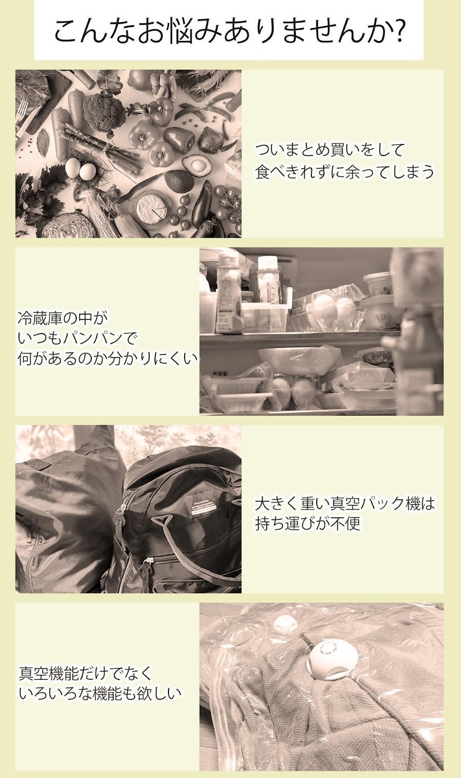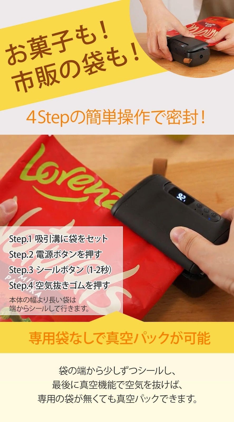 おいしさをギュッと閉じ込め長期保存!電源接続不要でどこでも真空パック保存できる!