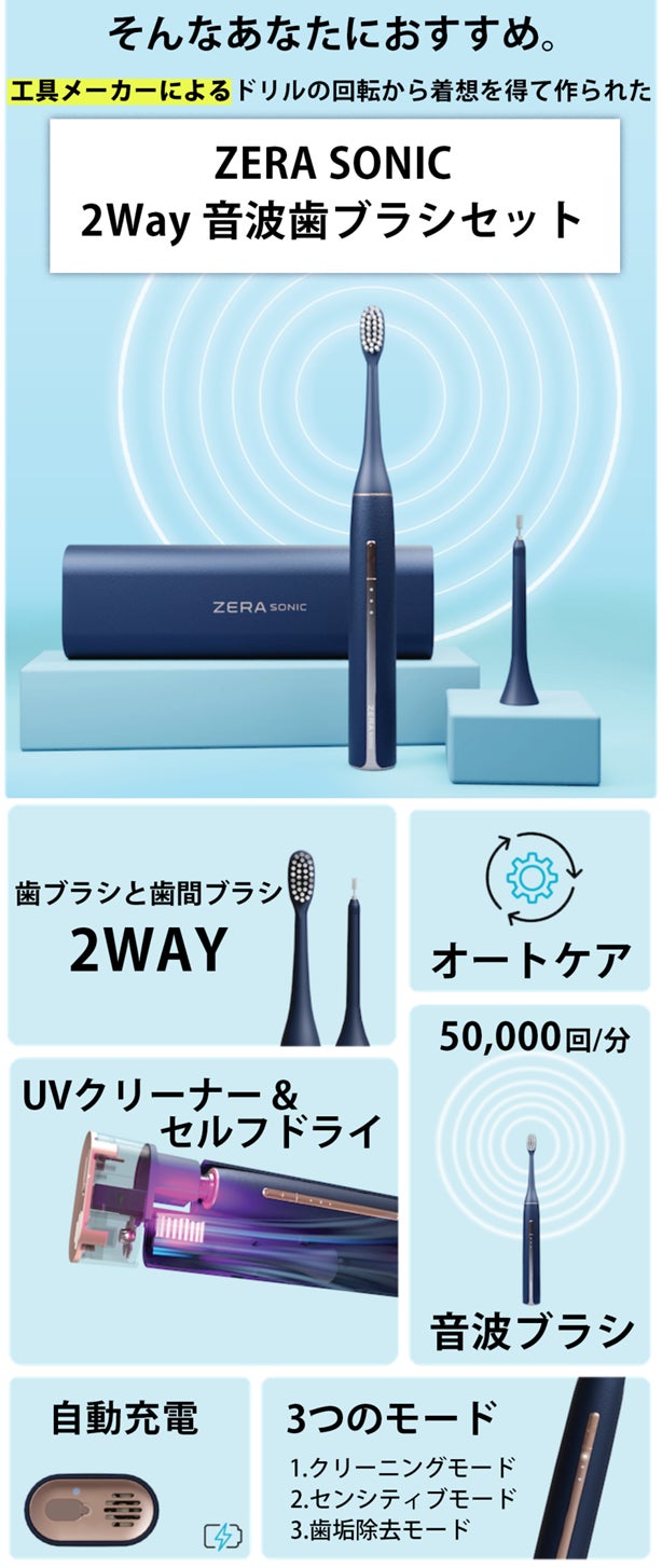 自動乾燥&UVクリーナーで常に清潔な歯ブラシ&歯間ブラシセット。