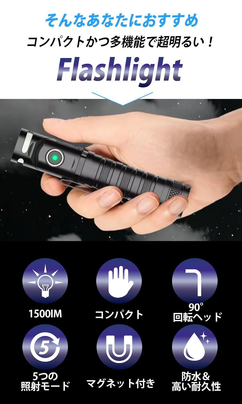 累計1万個出荷◎回転ヘッドで角度調整が自由自在!圧倒的な照射距離・明るさの小型LED懐中電灯!