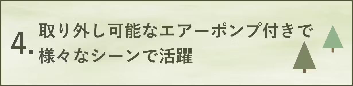 3種類のノズルで、様々なエアー製品に使用できます。空気入れを別に持つ必要がないので、荷物もコンパクトに。