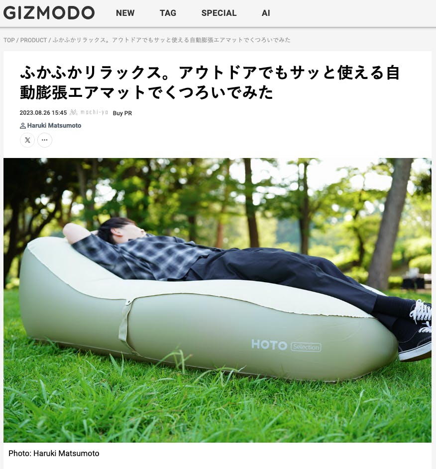 8月26日、GIZMODOで「HOTO AIR SOFA」を紹介して頂きました。