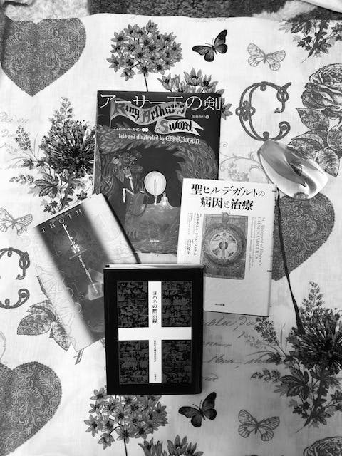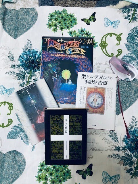 著書やブックマーク、御朱印帳、ジュエリーマスターが研磨した水晶など。