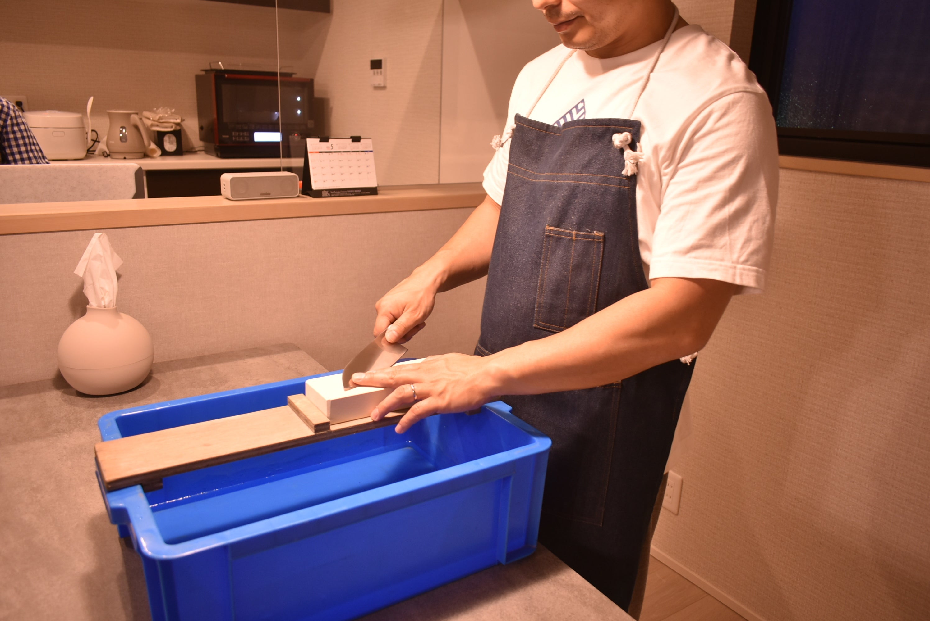 1.砥石を10分程度水に浸けましょう。