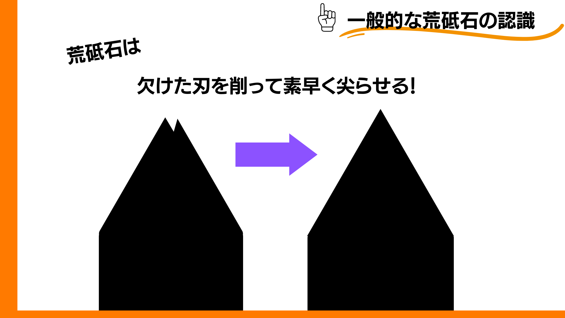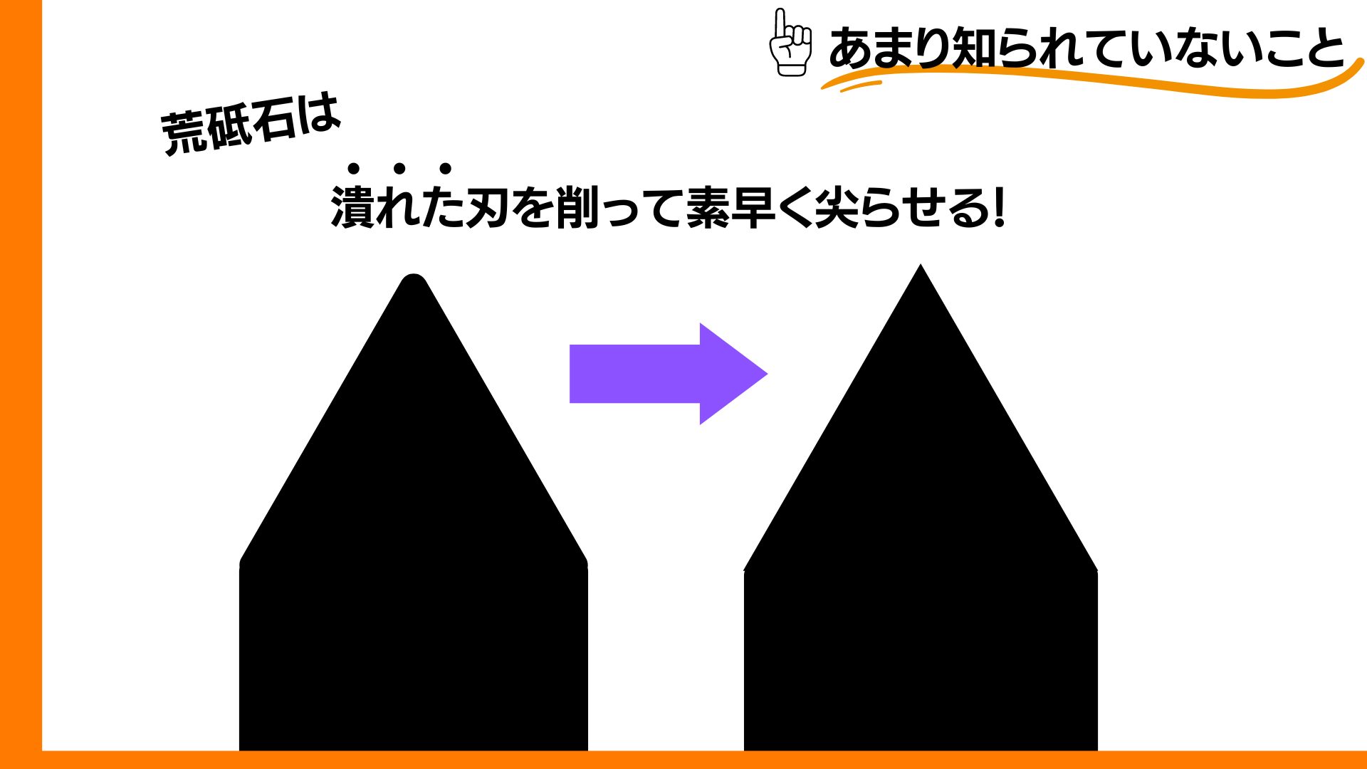 荒砥石は欠けた刃を削って尖らせる為に使用されることが一般的に知られていますが、