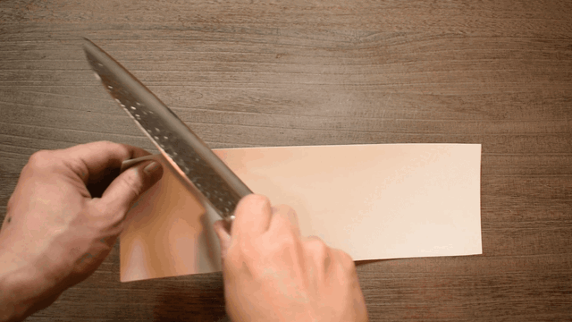 実際に、中砥石まで研いで仕上がった刃物の切れ味が以下のような感じになります。