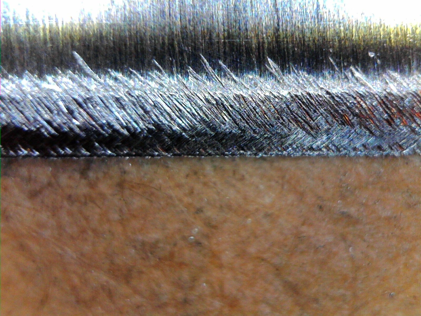 参考までにシャープナーと砥石の刃の仕上りの違いを写真でご覧ください。