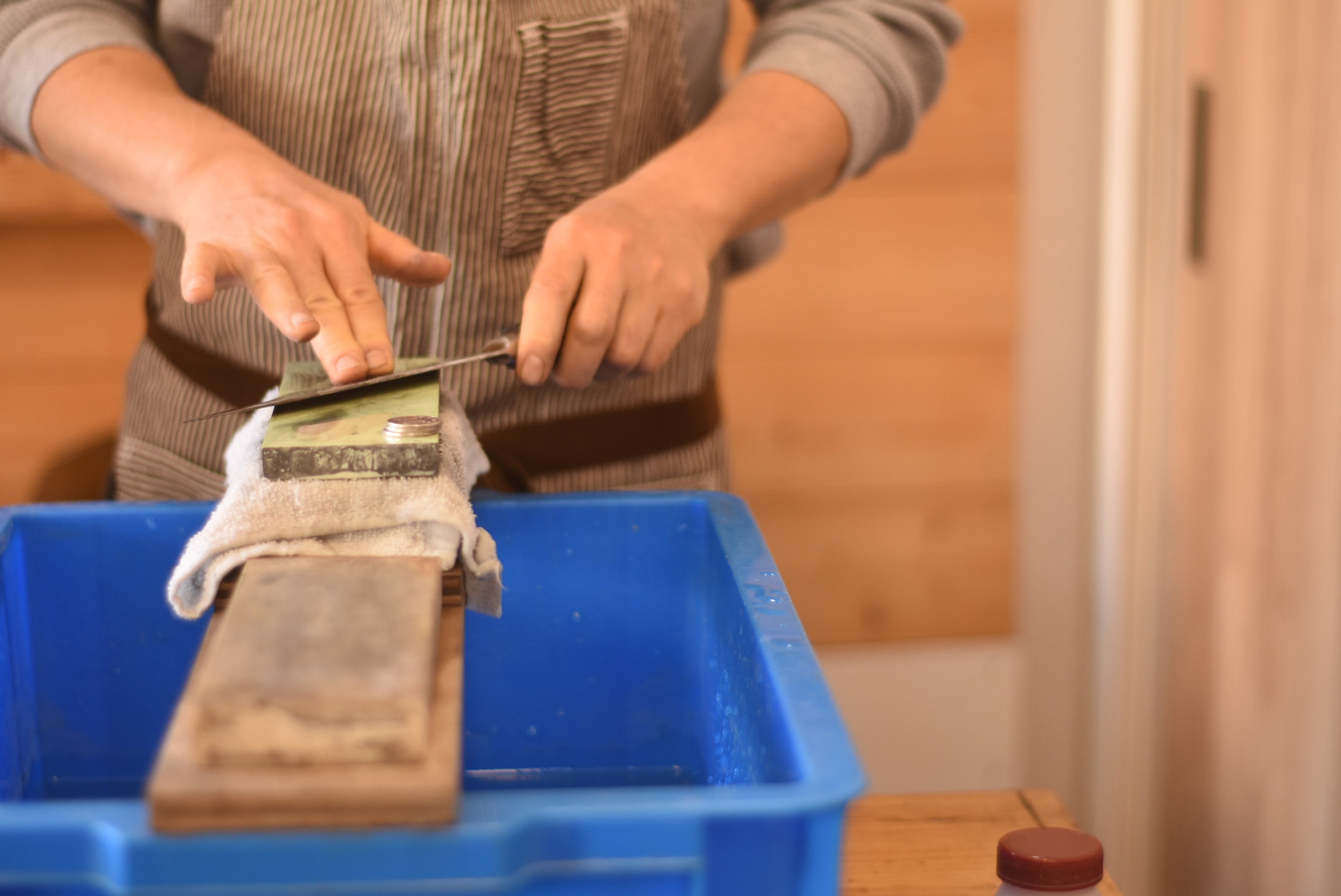 その為に、初心者でも簡単に包丁を研げるように調整した砥石セットを製作しました。