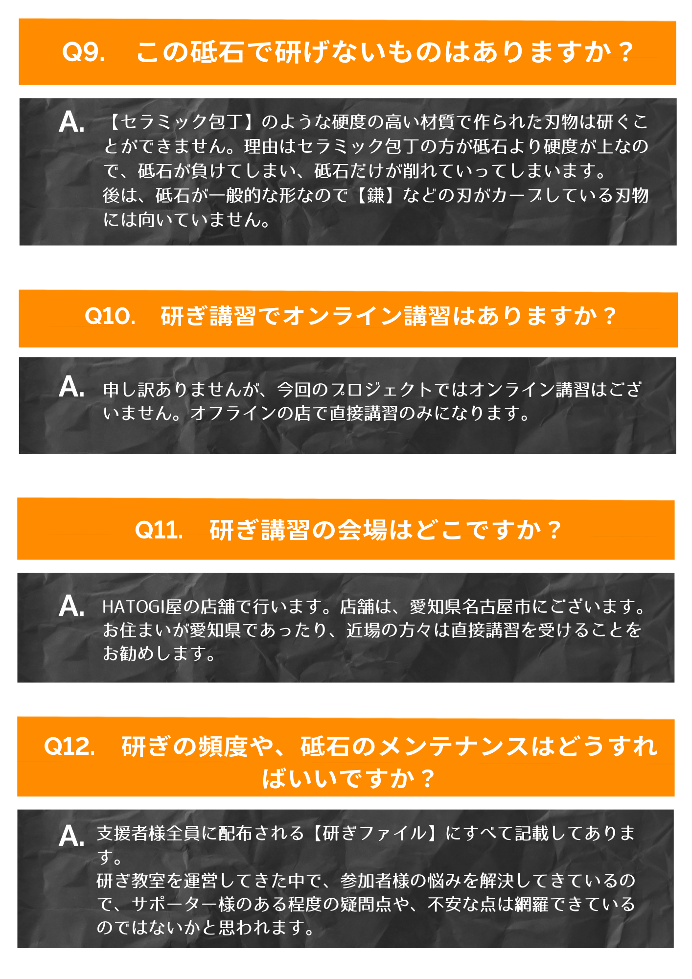 研ぎ師として多くの包丁や刃物を研いできて、長年研ぎ教室も運営しており、そのノウハウが詰まったプロジェクトを発足させました。
