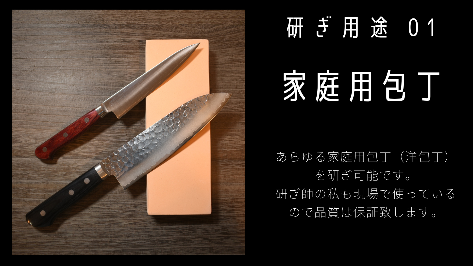 もちろん砥石と包丁にも相性はありますが、今回の砥石は私が店で色んな包丁を研いでテストしたので、大抵の包丁には対応できることは確認済みです。