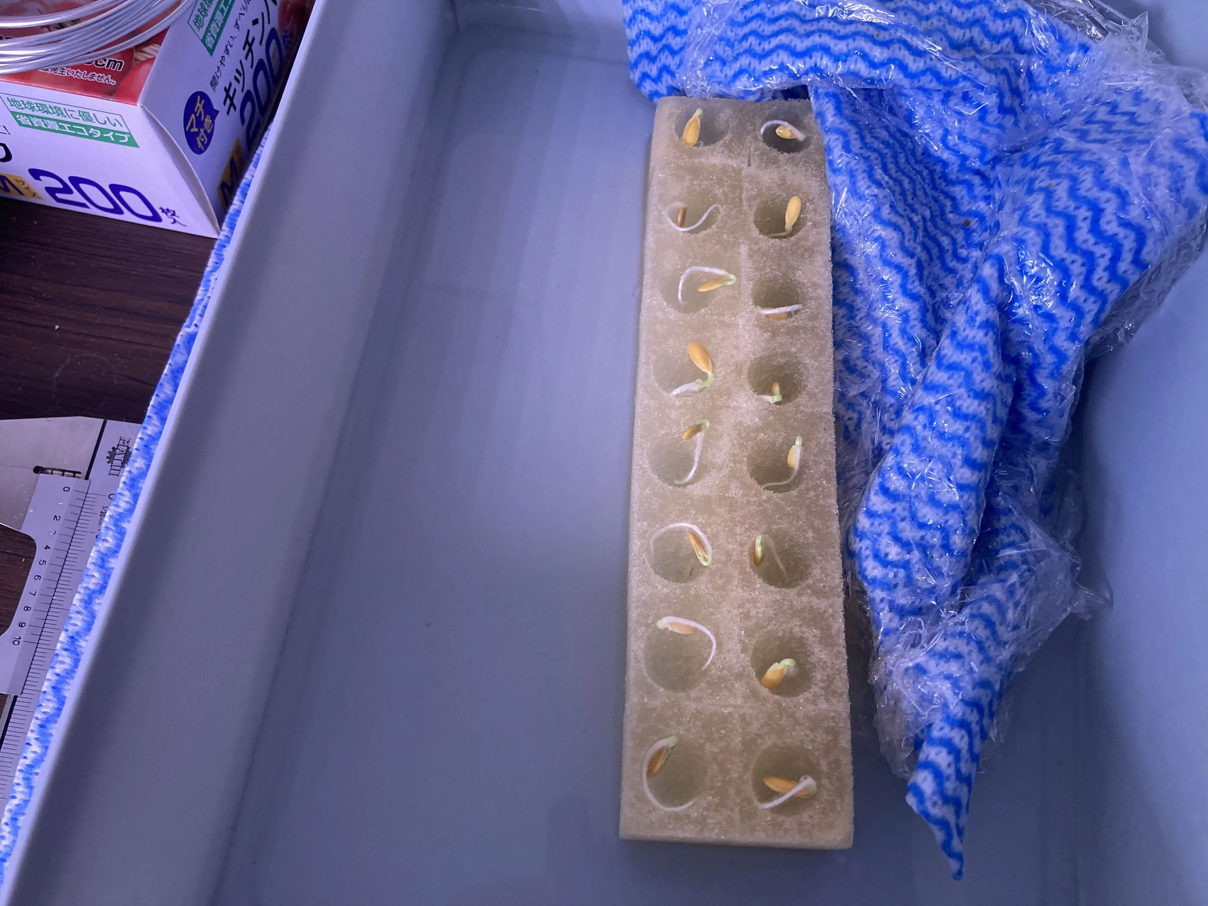 余分な穴が多いため、新たにアルミ蒸着シートによる養生を行って育成を進めていきたいと思います。テープで穴を塞ぐ方法と違い、以下の利点が挙げられます。