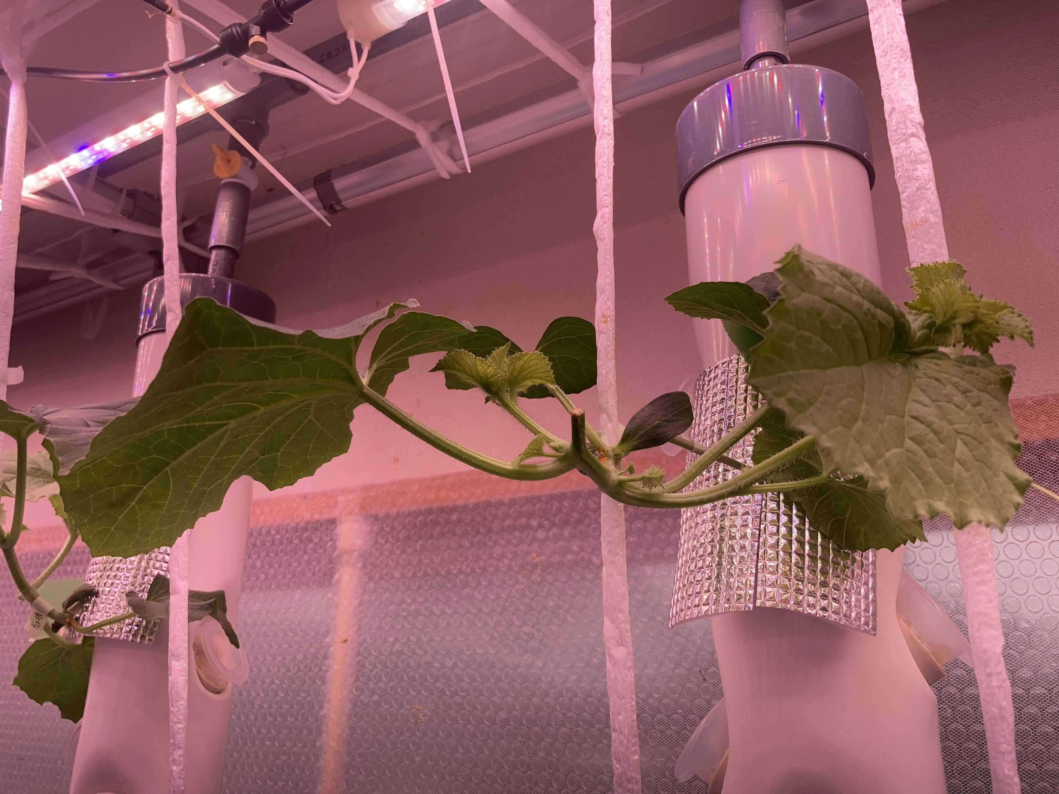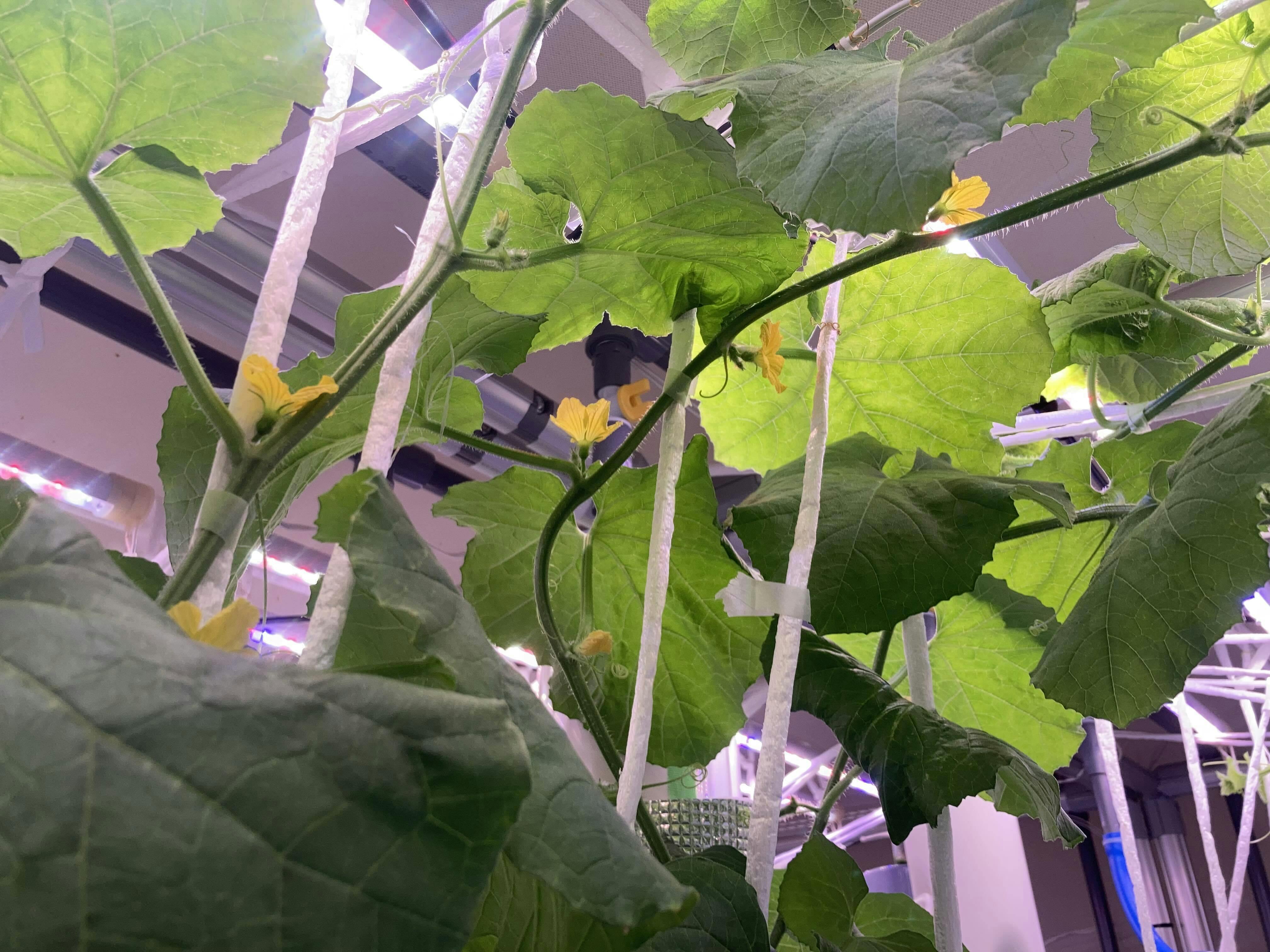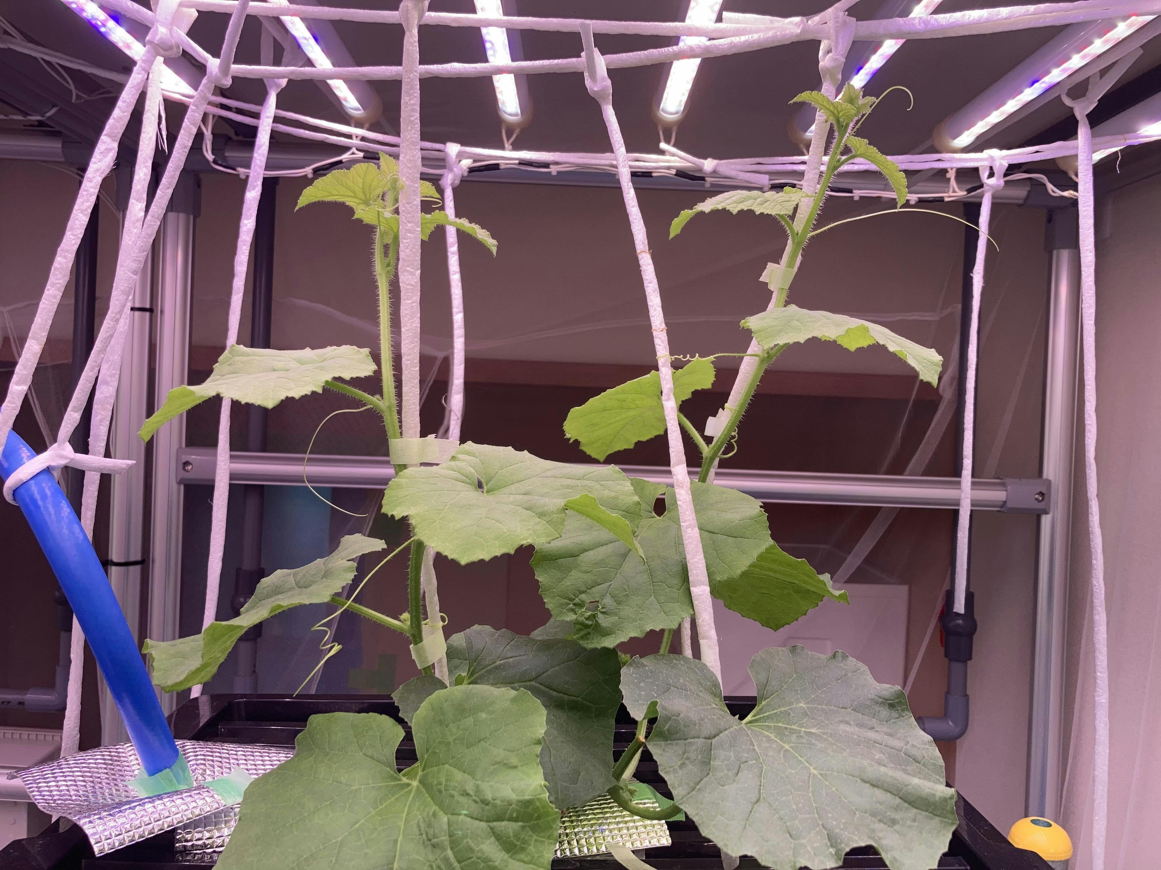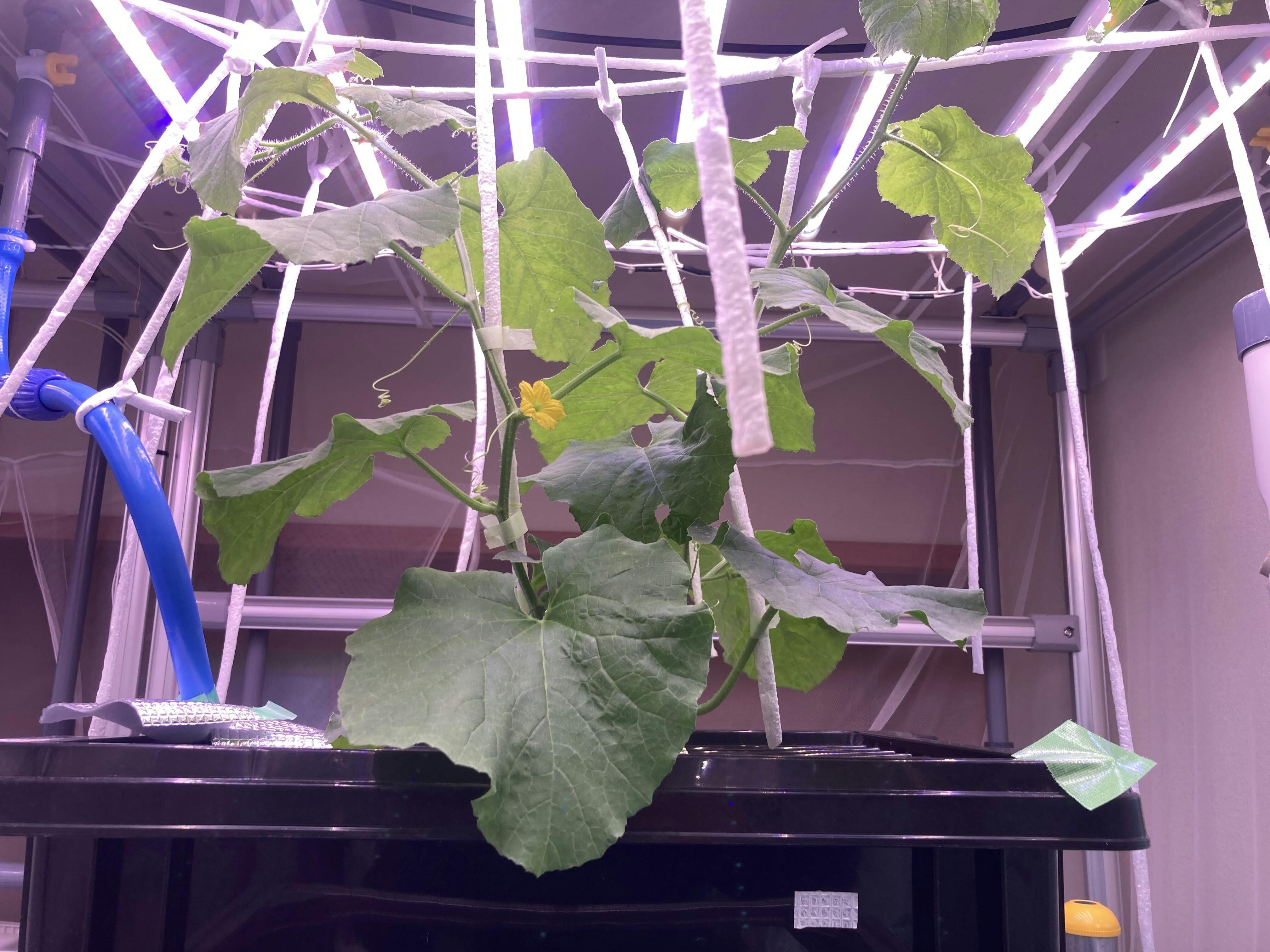 現在まで育成状況は順調で、全ての株について本ツルを摘心し、子ツルも一日数cm単位で伸びております。
