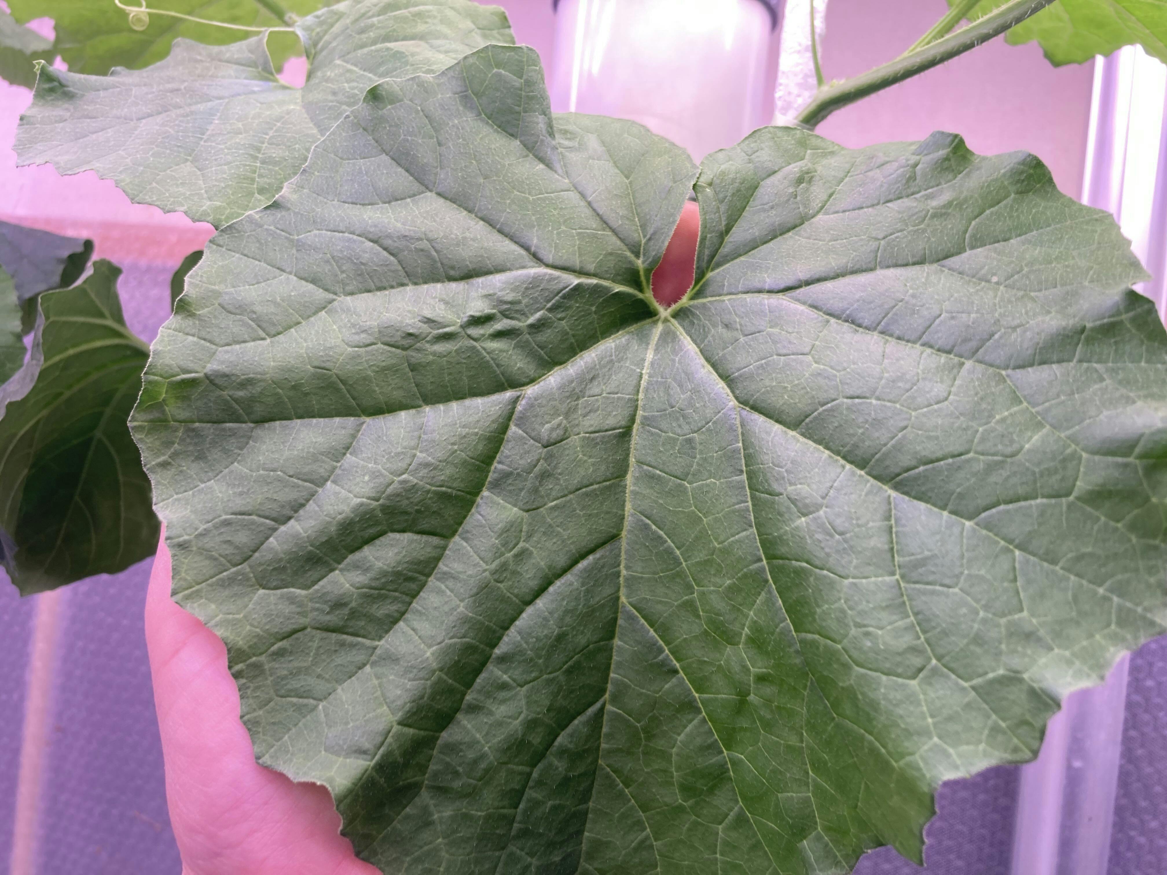 葉から見える健康状態は非常に良い状況です。今までは人工授粉の段階まで幾つかの葉を失っている場合が多かったですが、現在に至るまで葉は全て良い状態で残っております。