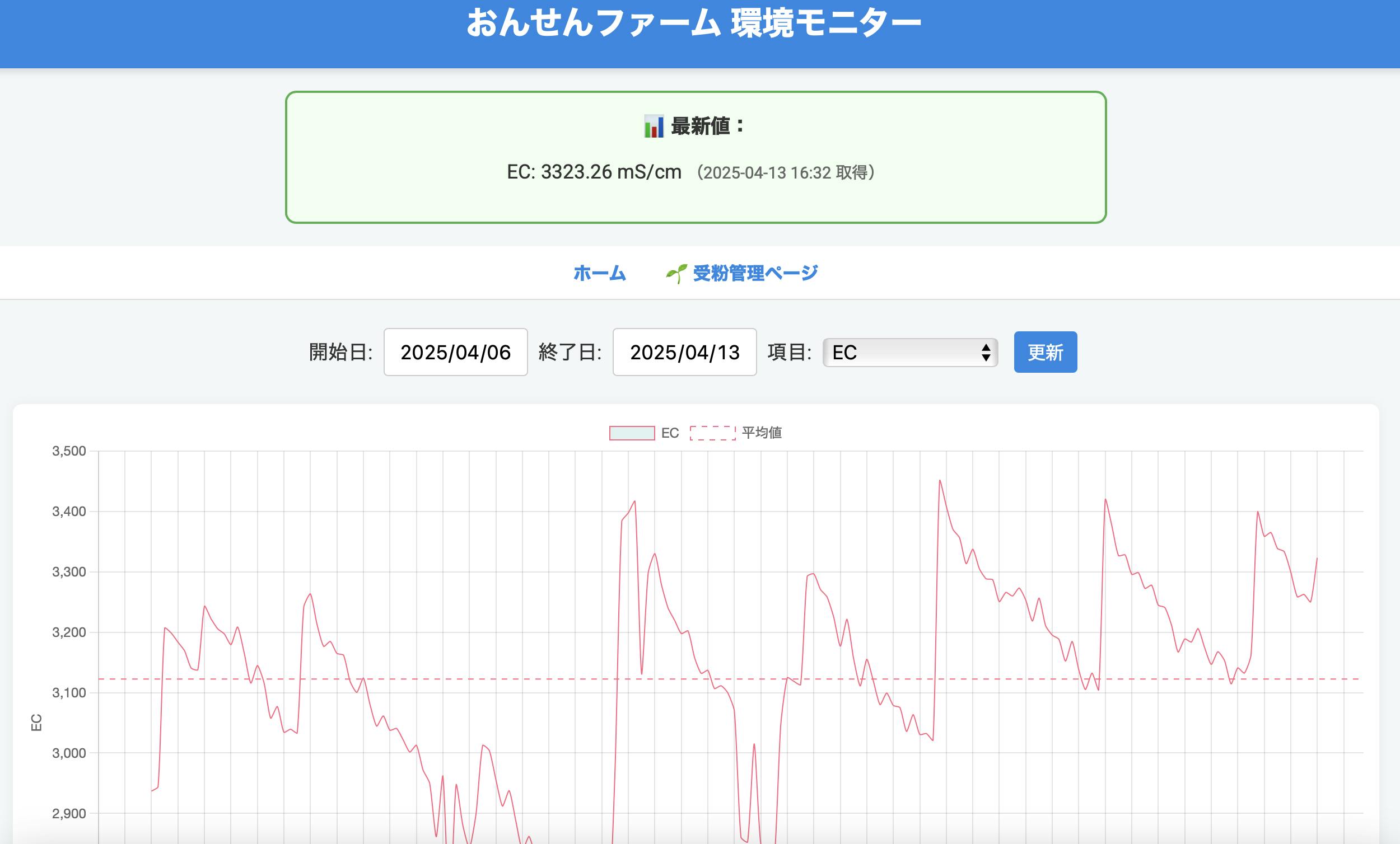 人工授粉の開始に合わせ、以前お伝えしました環境監視システムに成長管理機能を追加致しました。