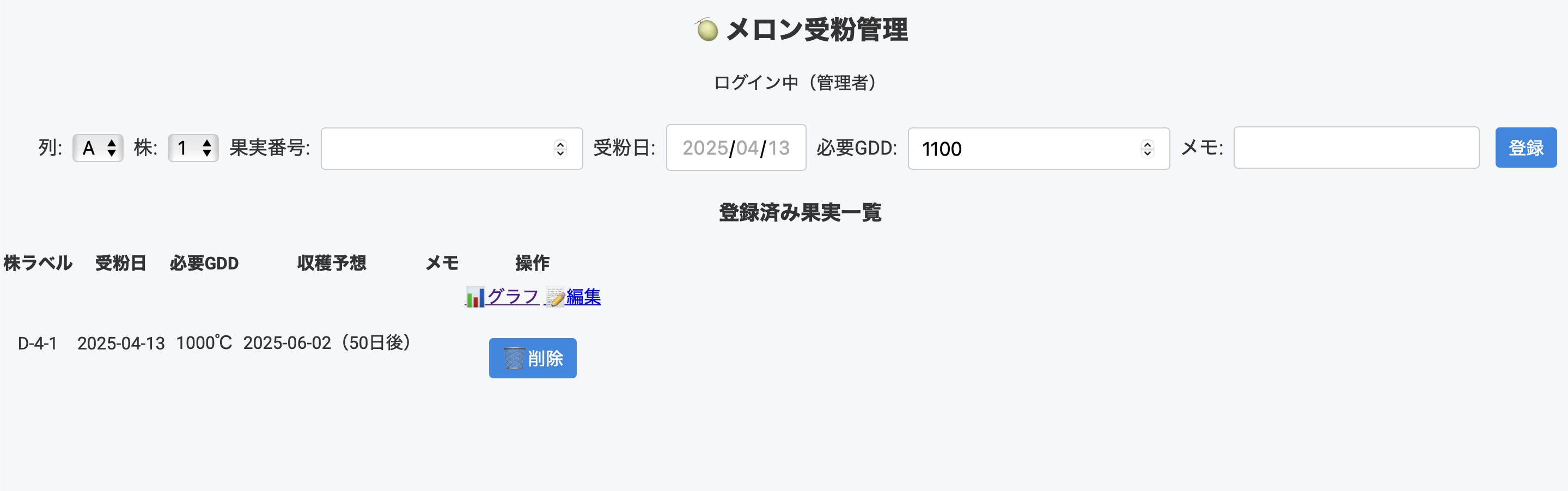 受粉日からの積算温度を計算し、収穫予想日まで一果単位で管理することが可能となりました。