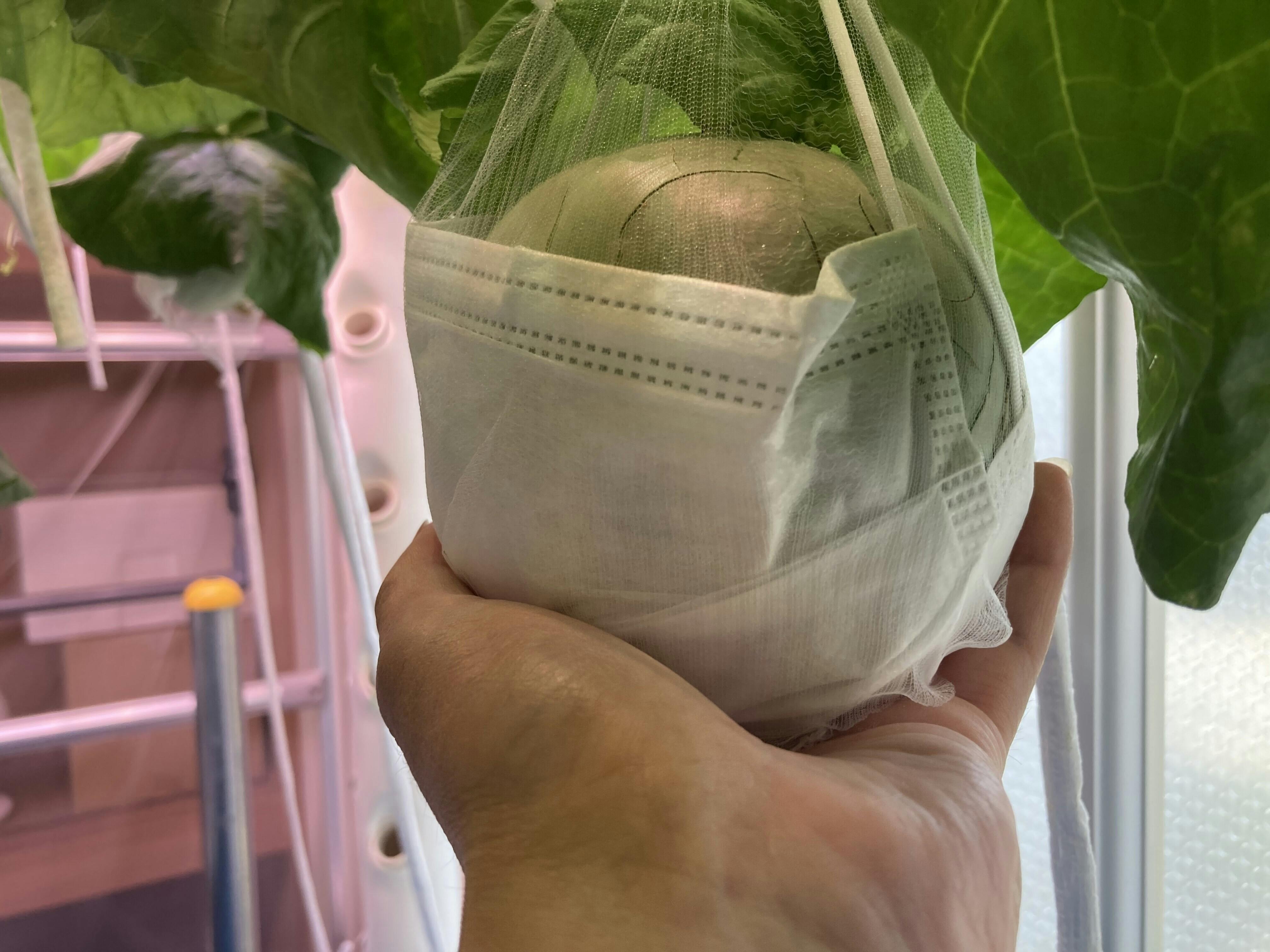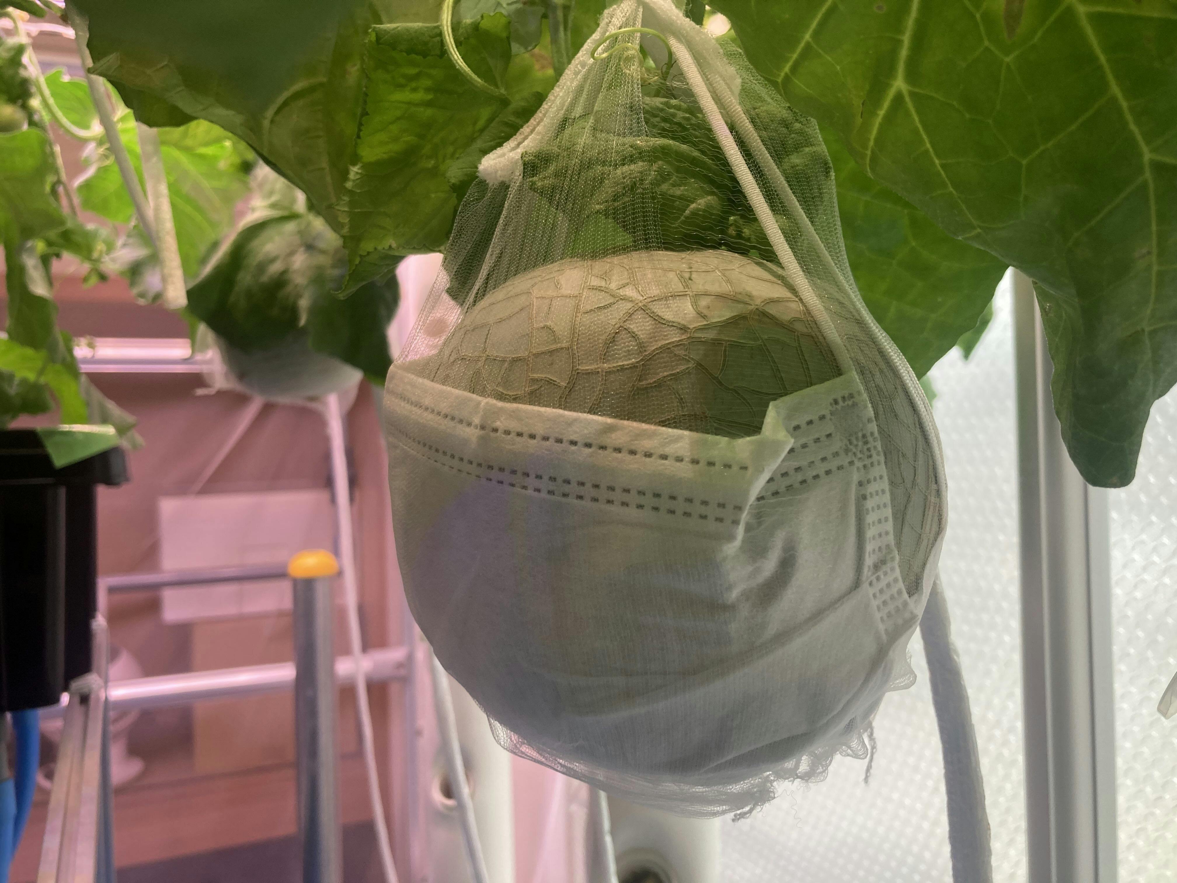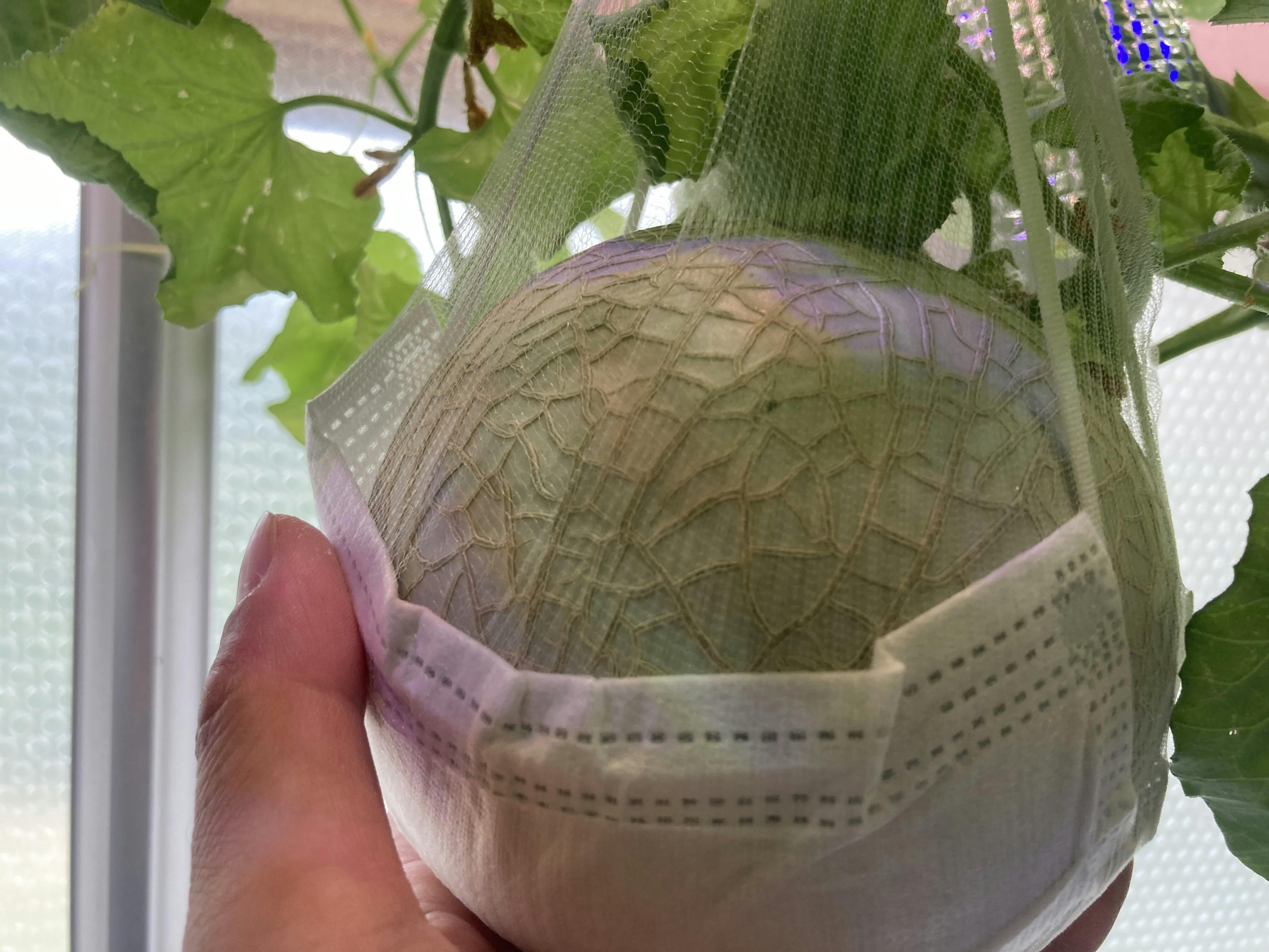 メロンの肥大が進みまして、現在市場に出回る小ぶりのメロンと同等のサイズに成長しております。