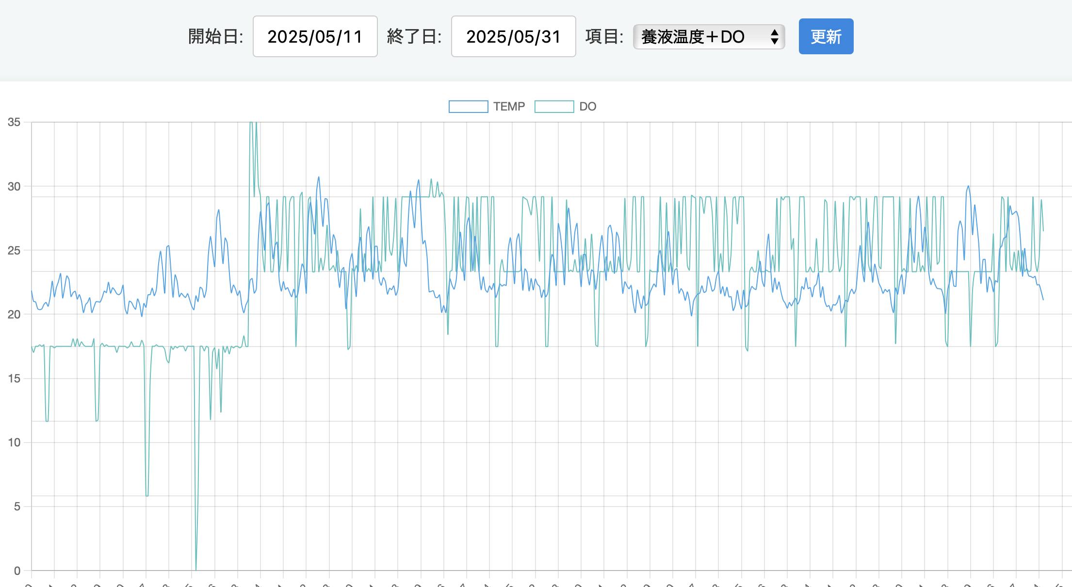 通常水温が高いほど溶存酸素濃度は下がりますが、装置導入後は水温による変化が少なく、安定したDO値をキープしておりますので、一定の効果が期待できると考えております。