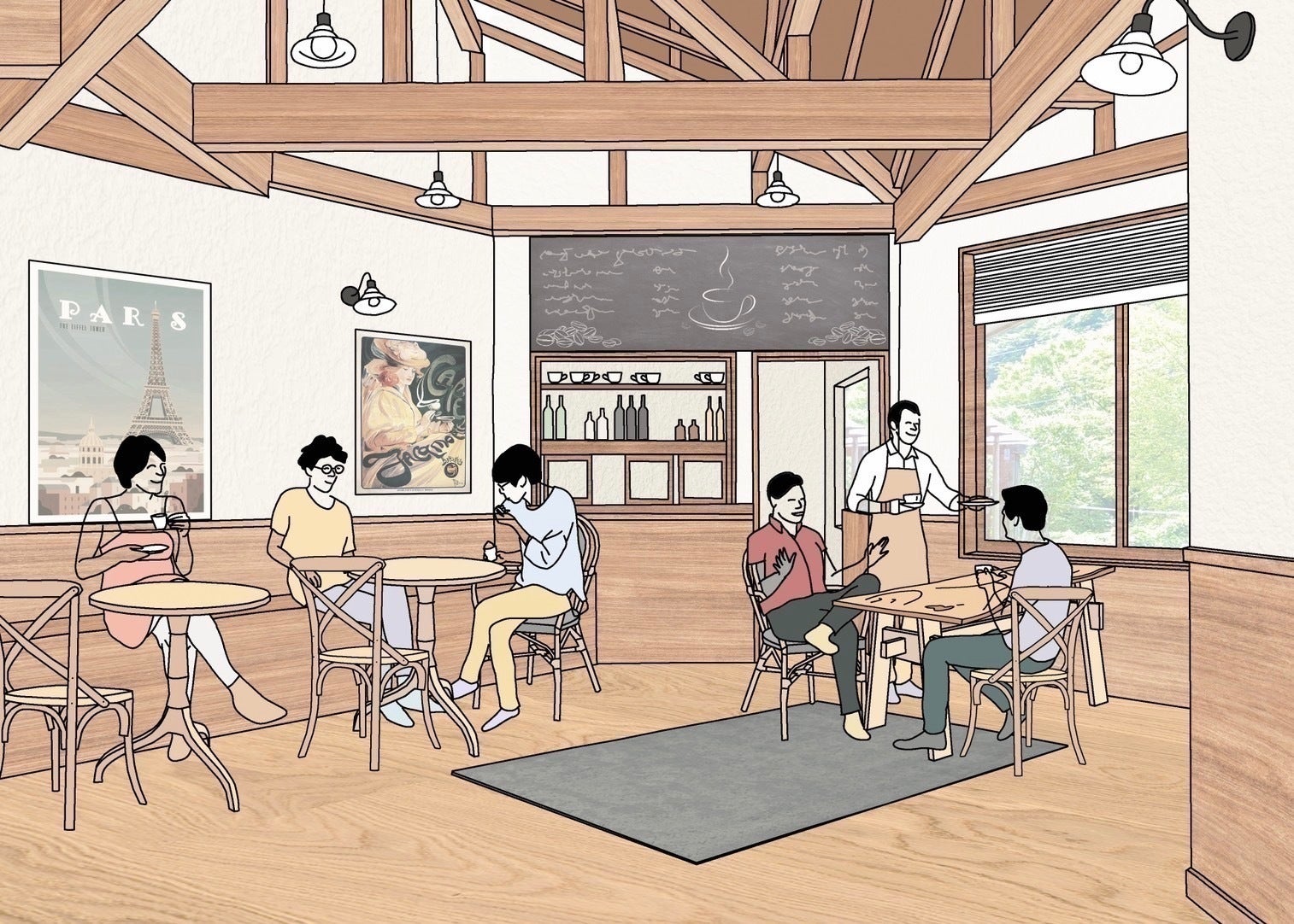 冬期間には、特別な体験や非日常を楽しみたい方々向けに、洋食(主にラクレットやフランス、イタリアの家庭料理)を提供します。さらに、ミニライブ、結婚式の二次会、趣味の会合、パブリックビューイングなどのイベントも開催したいと考えています。店内には地元の特産品や、フランスから直輸入した製品を販売するコーナーを設置します。